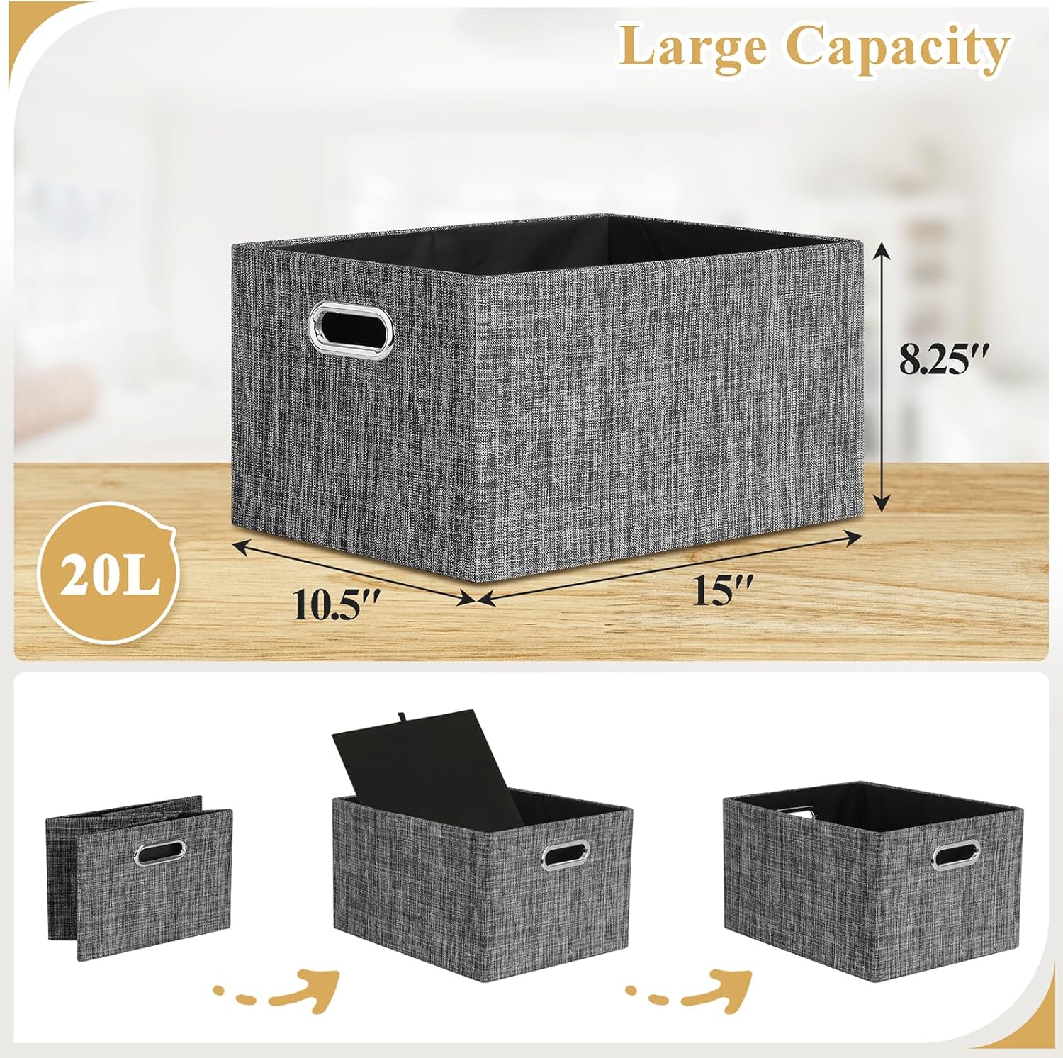 - Large Capacity: 15x10.5x8.25" closet storage bins has a capacity of 20 liters and can hold many clothes, toys, DVDs, and more. Organize your closet shelves to make them organized and organized. This is what you’re looking for something elegant, stylish, and durable!
