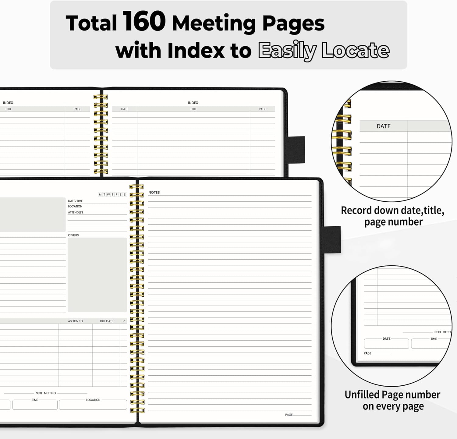 - Each 160 Pages Per Book: Provide ample space for note taking & planning and with the date section at the top for tracking them. With 160 pages for meeting minutes, the manager notebook will cover more than half a year, even in daily use. Also provides index pages for organizing this office planner.
