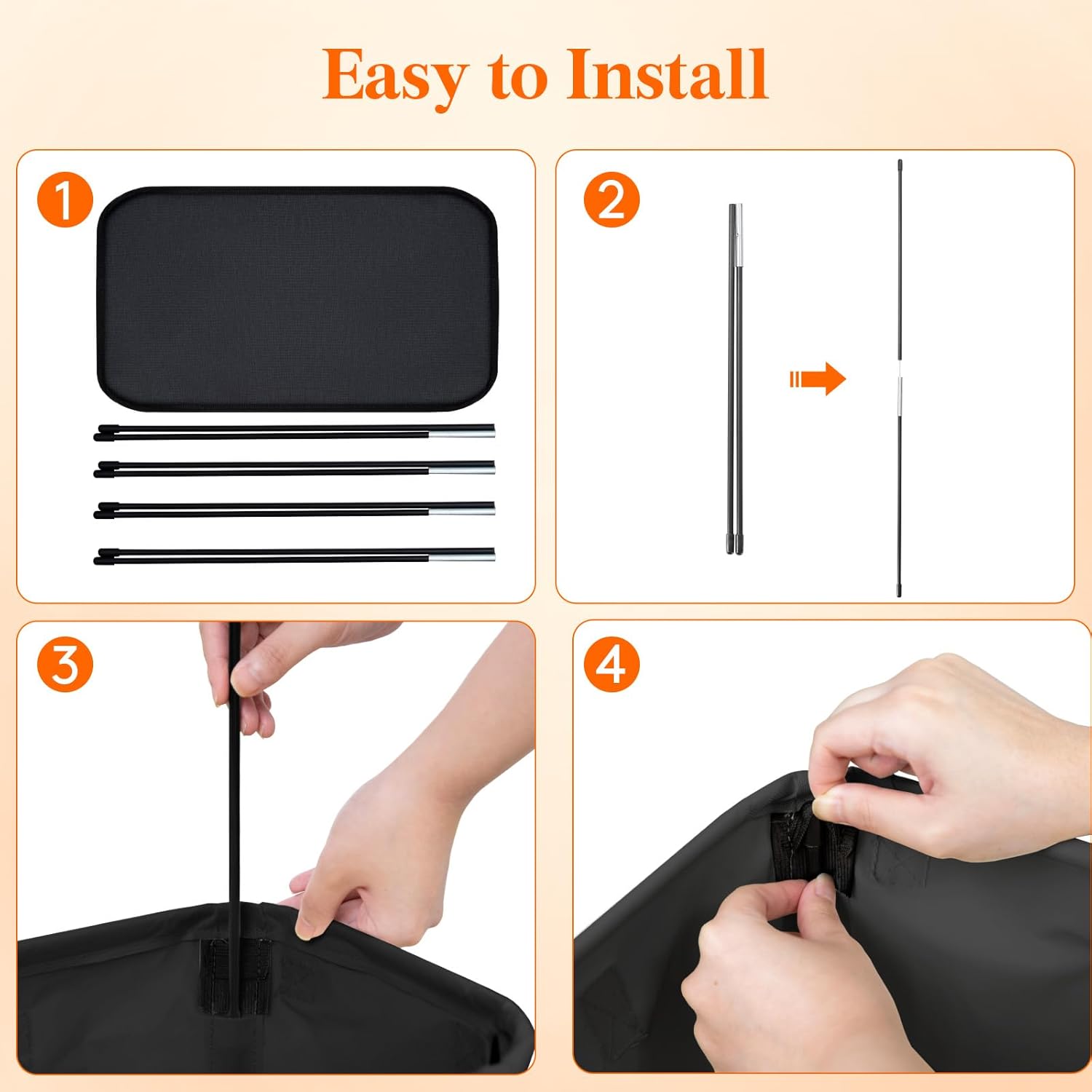 - Easy assembly: Just slide the rods into slots for quick setup. The metal frame, thick PE panels and 4 reinforced rods keep it standing sturdy even when fully loaded with laundry