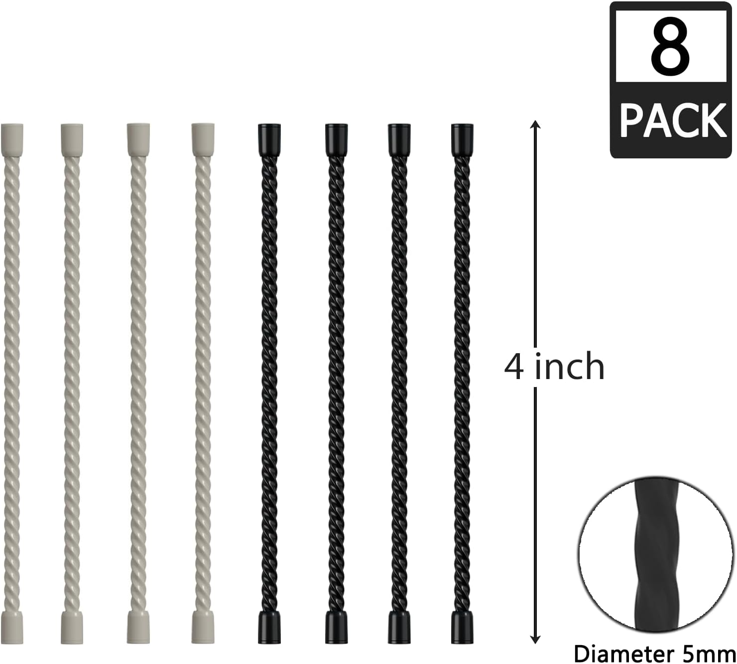 8PCS Silicone Cable Ties 4 Inch Reusable Twist Ties Steel-Core Cable Tie Straps Organizer All Purpose Bendable Cord Tie for Indoor Outdoor Bundling Holding Securing and Wrapping (Black White)