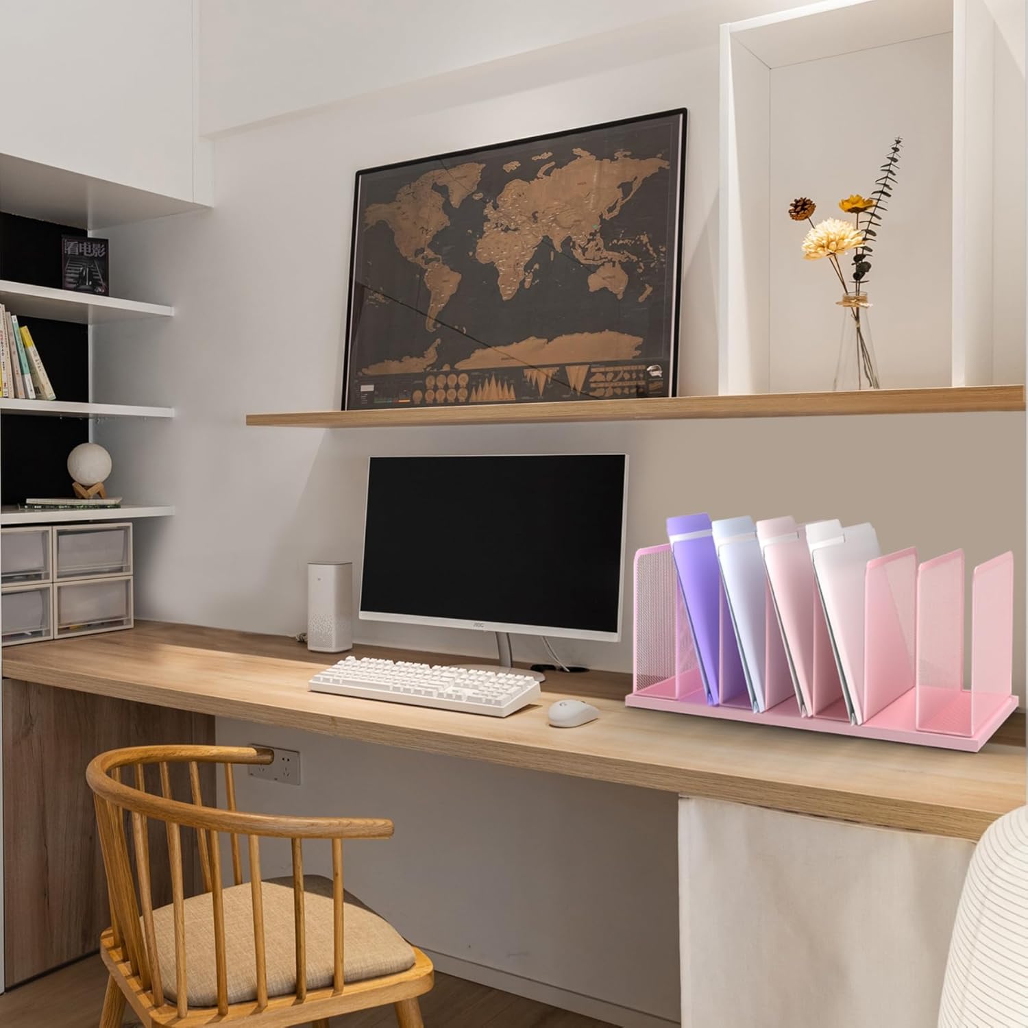 Kuntine.B Desk File Organizer Upright Mesh Desktop Organizer File Sorter Office Organization File Holder for Home, Office & Classroom (Pink, 1 Pack 7-Section)