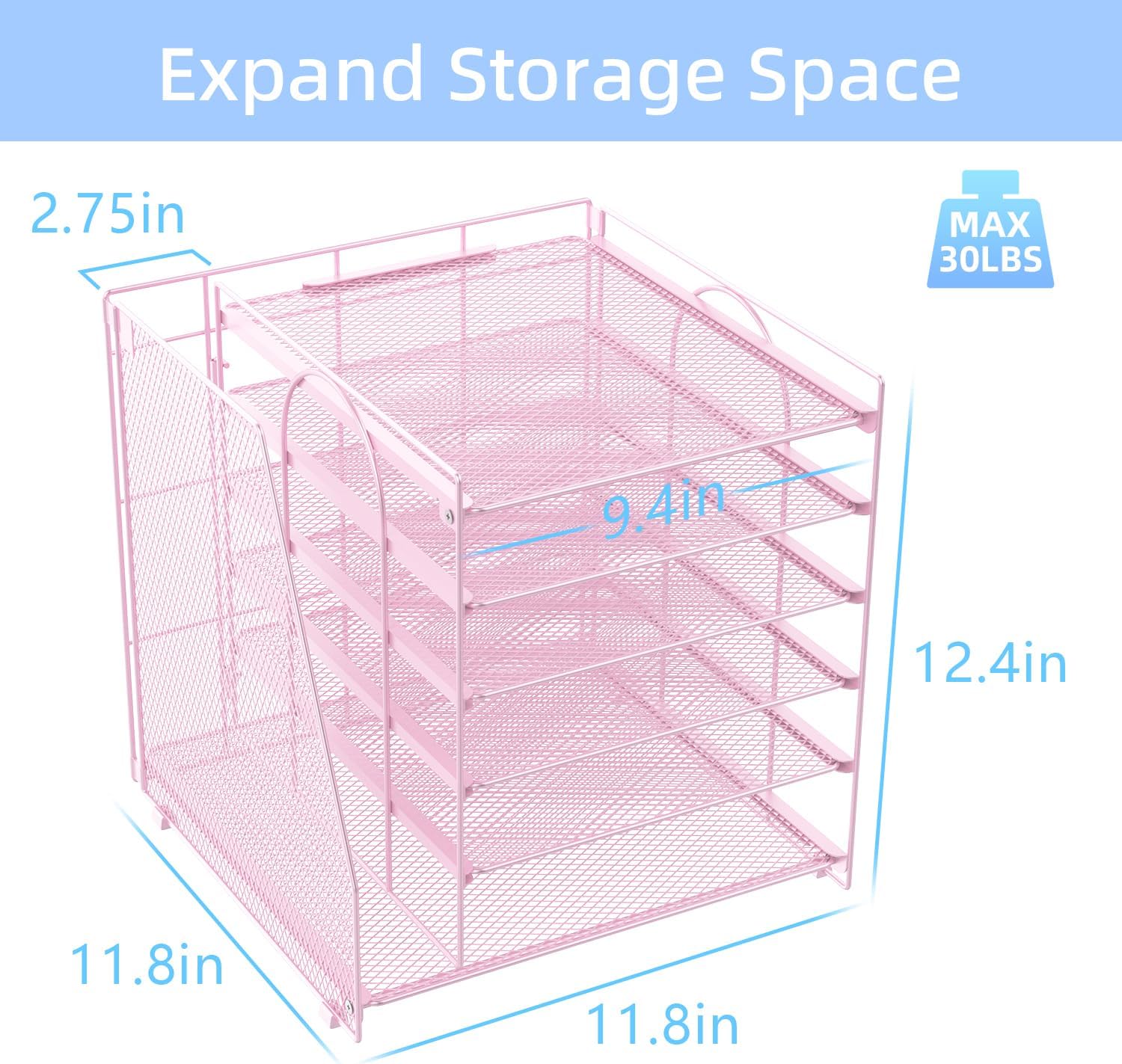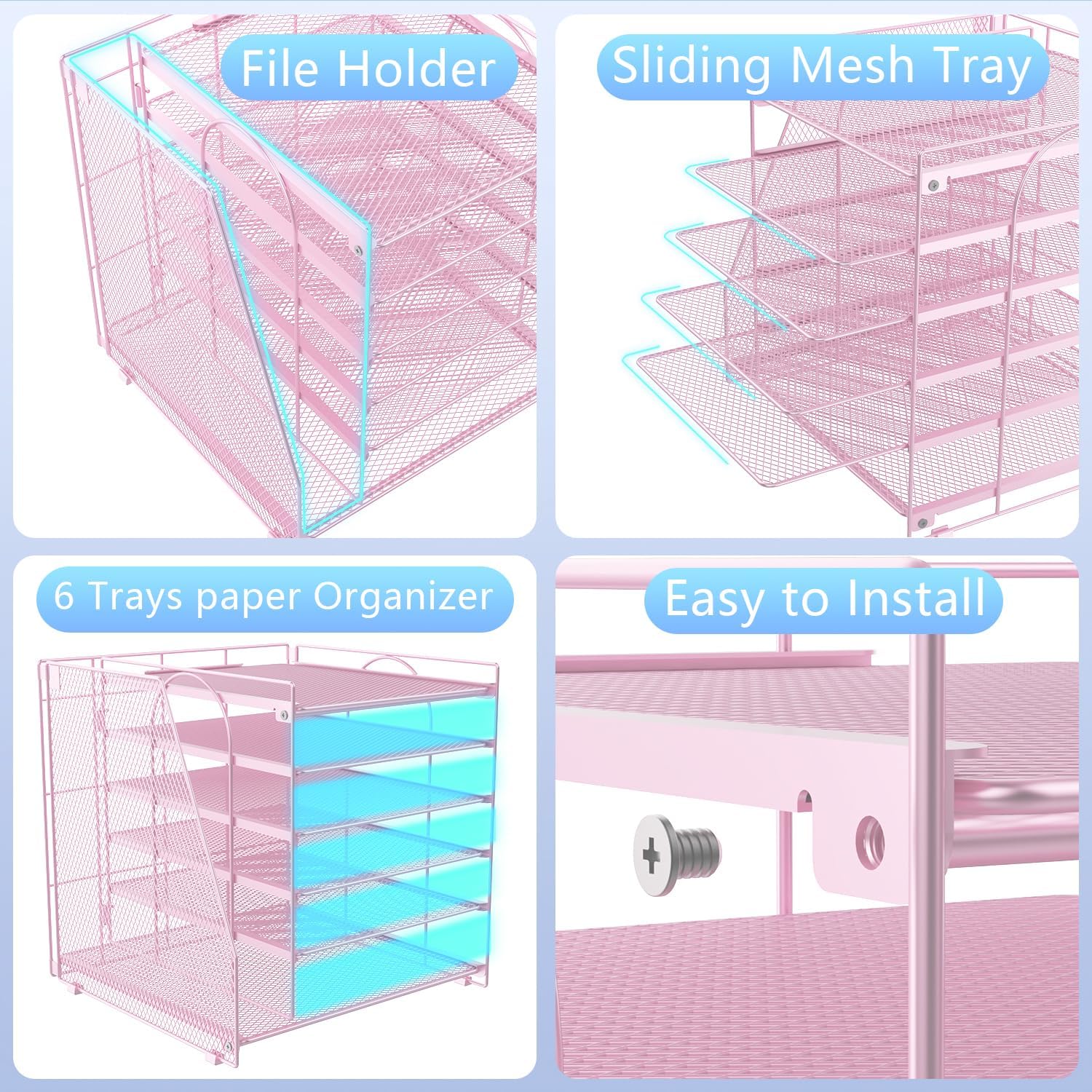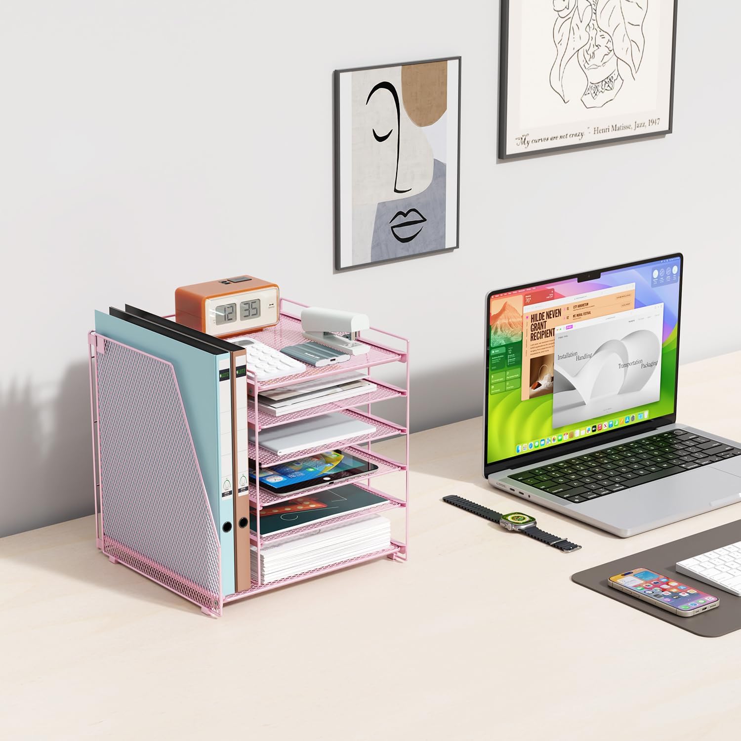 gianotter Desk Organizers and Accessories, 6-Tier Paper Organizer with Magazine rack, File Organizer for Desk, Desk Organizers for Women, Pink Office Decor (Pink)