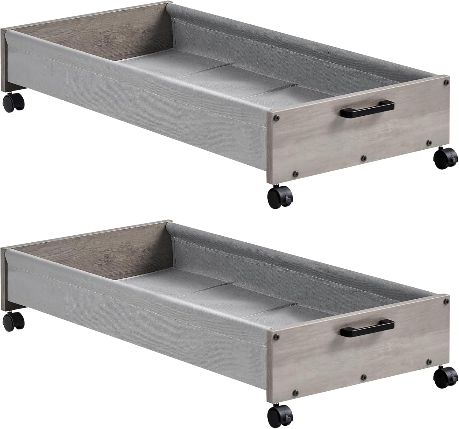 Under Bed Storage with Wheels, Wooden Under Bed Drawers On Wheels, Rolling Under Bed Shoe Storage, Space Saving,Grey,50L