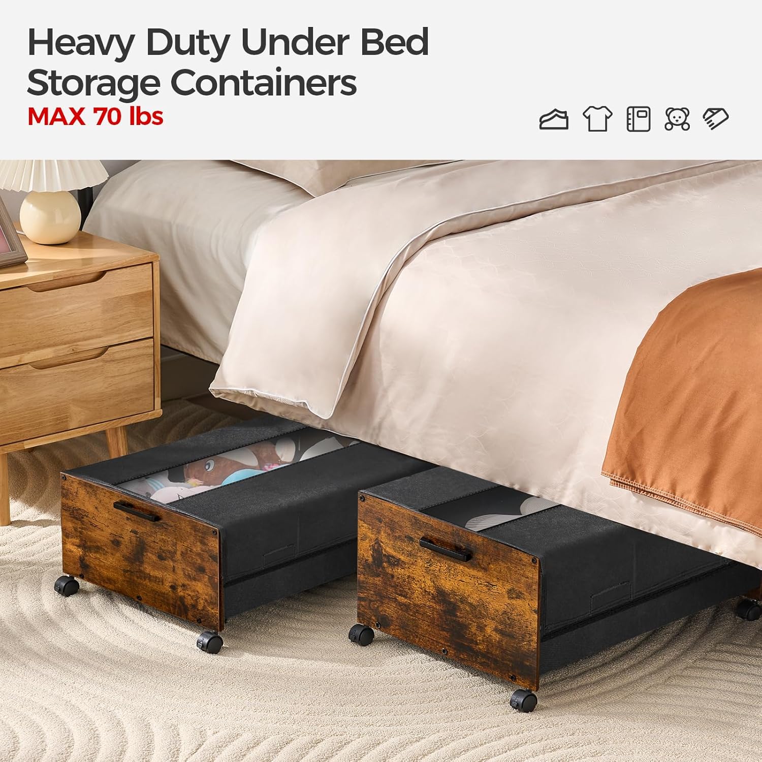 - Under Bed Storage with Wheels: Engineered with metal frame, industrial style wood panels, beautiful appearance, offering 3X the durability of fabric organizers. Built to hold heavy blankets, books, or seasonal wardrobes without sagging
