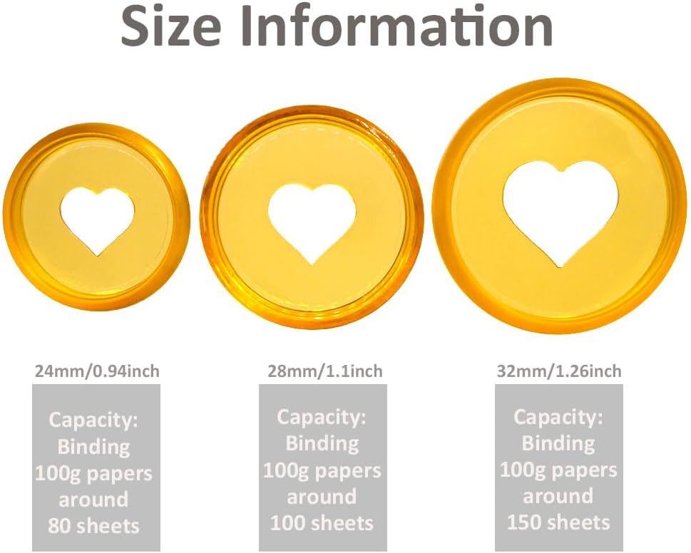 - Dimensions: 0.94 inch(24mm) holds 80 sheets/1.1inch(28mm) holds 100sheets/1.26inch(32mm) holds 150sheets.Our heart discs are compatible with popular discbound notebook systems,discbound planner accessories and covers.