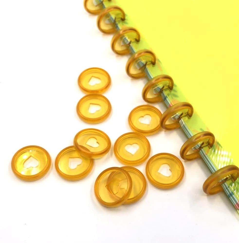 100pcs Planner Expander Discs 0.94Inch Book Binding Disc For Discbound Notebook Accessories Heart Binder Rings(Transparent Orange,0.94inch/24 mm)