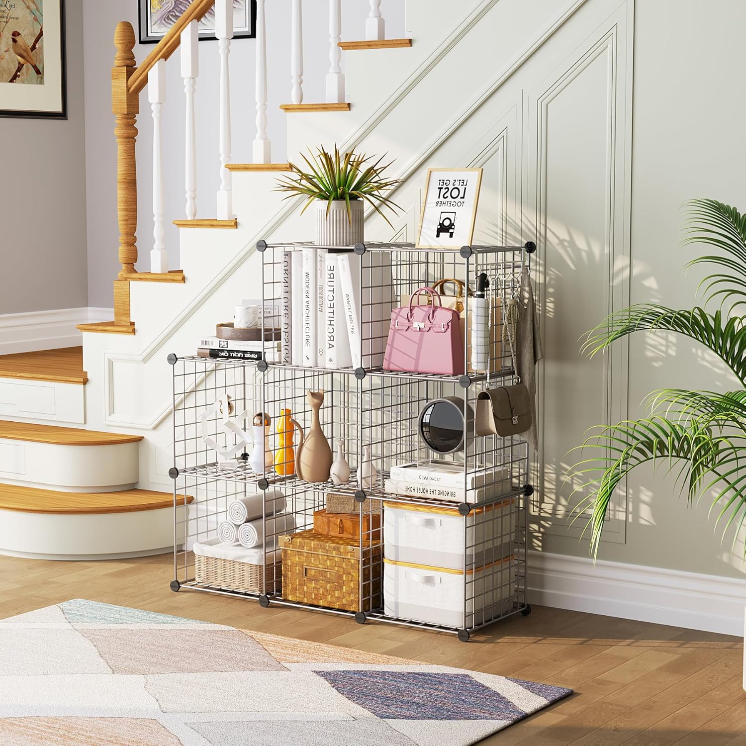- MULTIFUNCTION: Multifunctional metal storage has a modern industrial an ideal choice to your living room, bedroom, corridor or kitchen etc.Perfect as a storage rack for clothes, books, shoes, toys, bags, artcrafts, potted plants,ball of wool and other necessities.Within the number of panels, you can also install a pet fence to give your pet a home