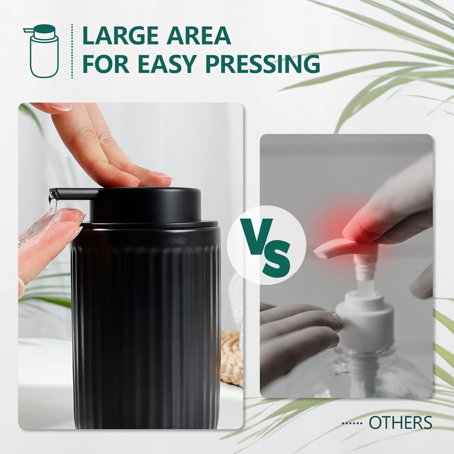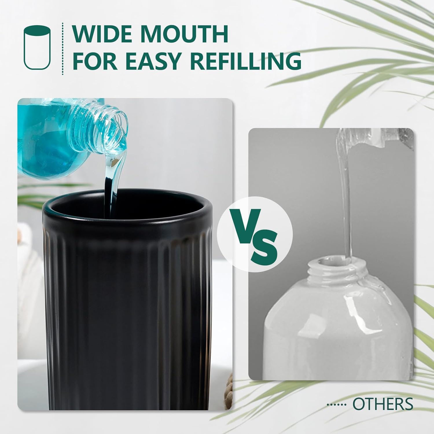 BosilunLife Ceramic Bathroom Accessories Set - Bathroom Counter Soap Set Black Bathroom Decor Sets Accessories Bathroom Lotion Soap Dispenser and Toothbrush Holder Set, Soap Dish, Apothecary Jars