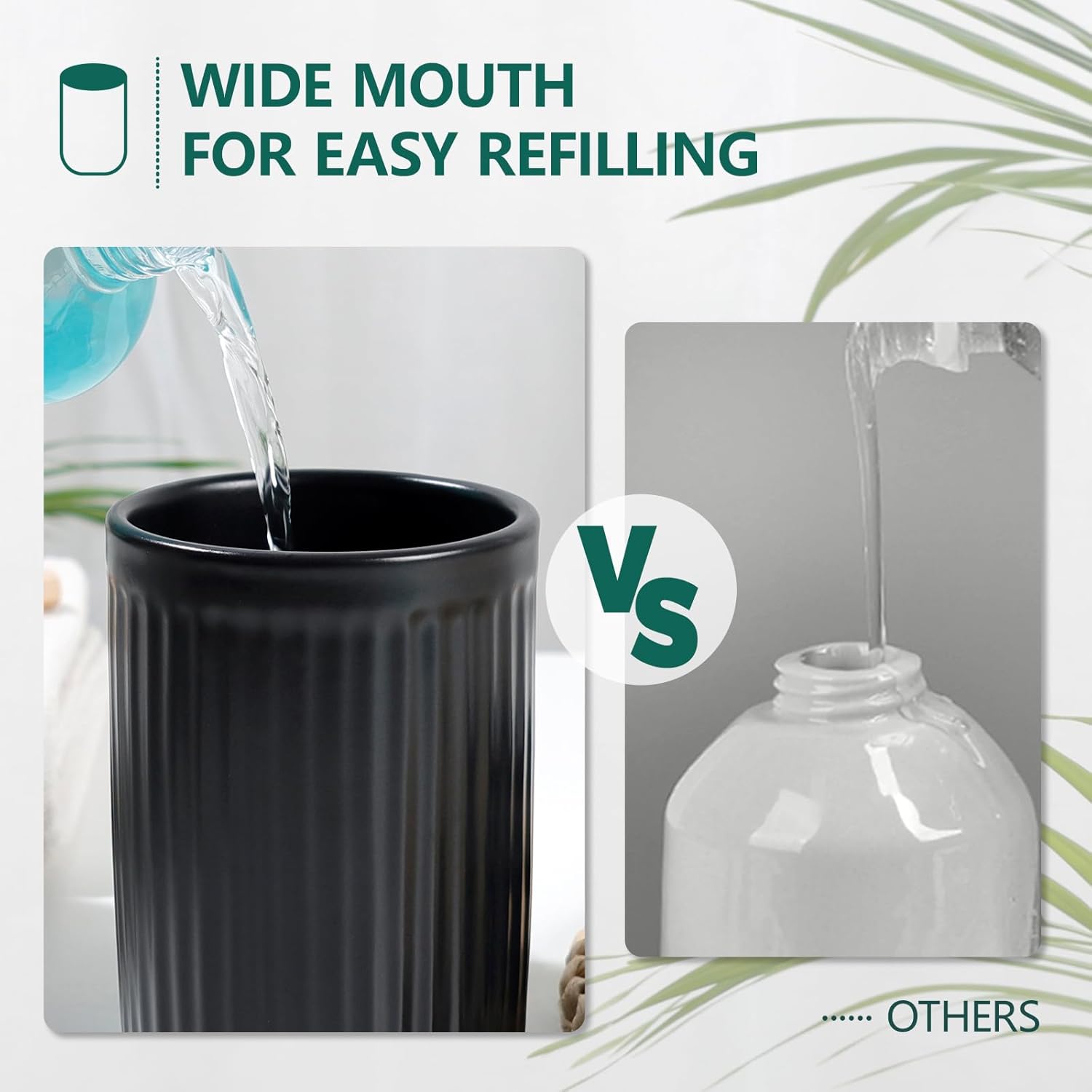 BosilunLife Black Bathroom Accessories Set - Ceramic Bathroom Counter Soap Set Bathroom Decor Sets Accessories Bathroom Lotion Soap Dispenser and Toothbrush Holder Set, Soap Dish, Apothecary Jars