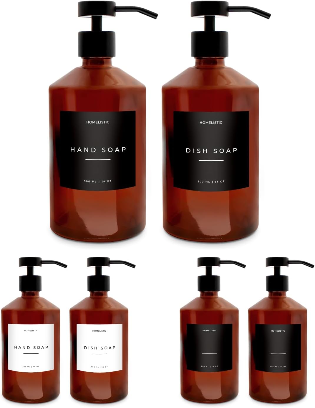 - **High-Quality Materials**: Each soap dispenser is made from durable amber glass with a robust pump, providing you with a reliable soap and lotion dispenser set that complements your kitchen sink or bathroom countertop.