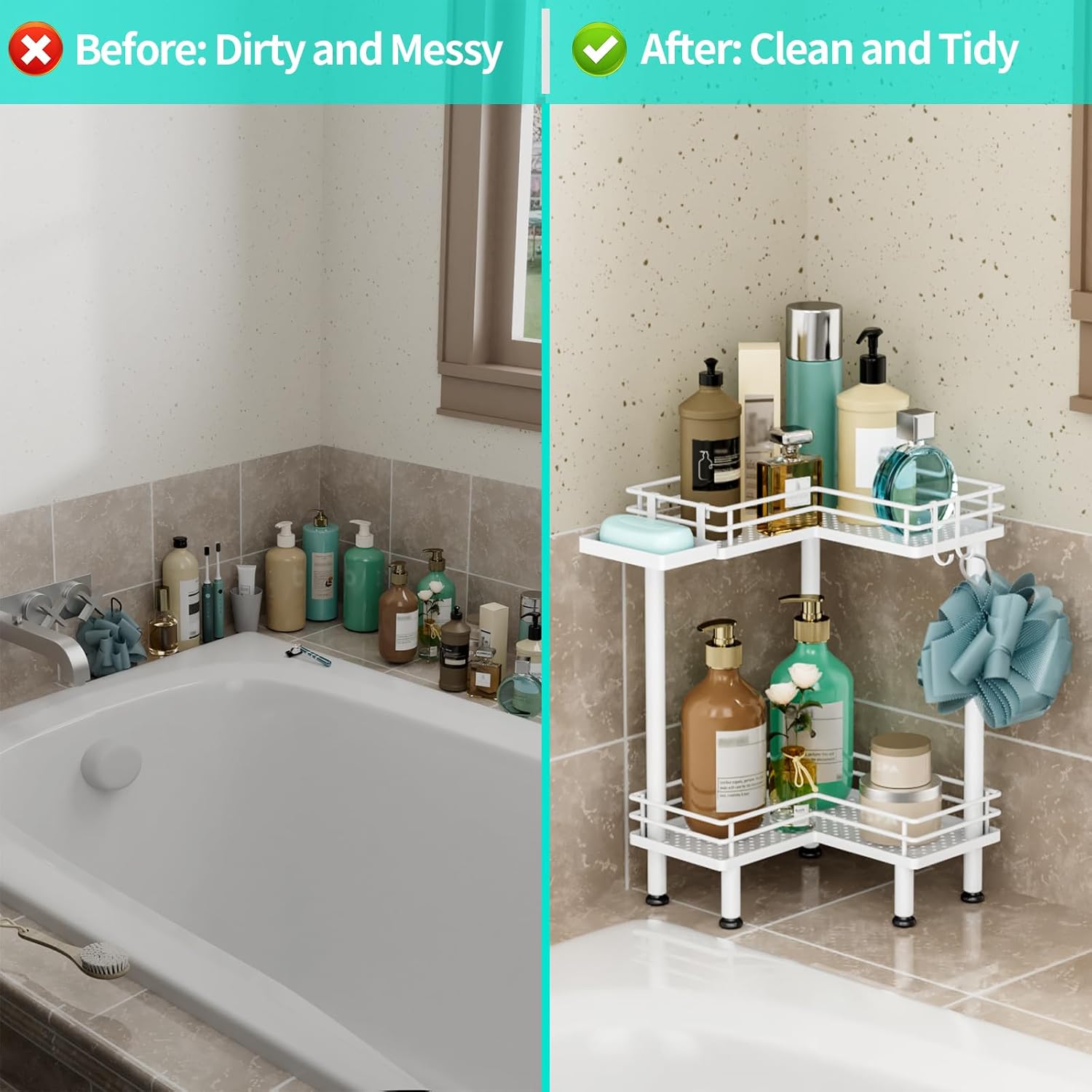 - [Easy Installation and Professional Service]: Our shower corner shelf is easy to install with complete accessories, and it can be done quickly in a few minutes. If you have any dissatisfaction with the shower tower caddy corner, please reach out to us
