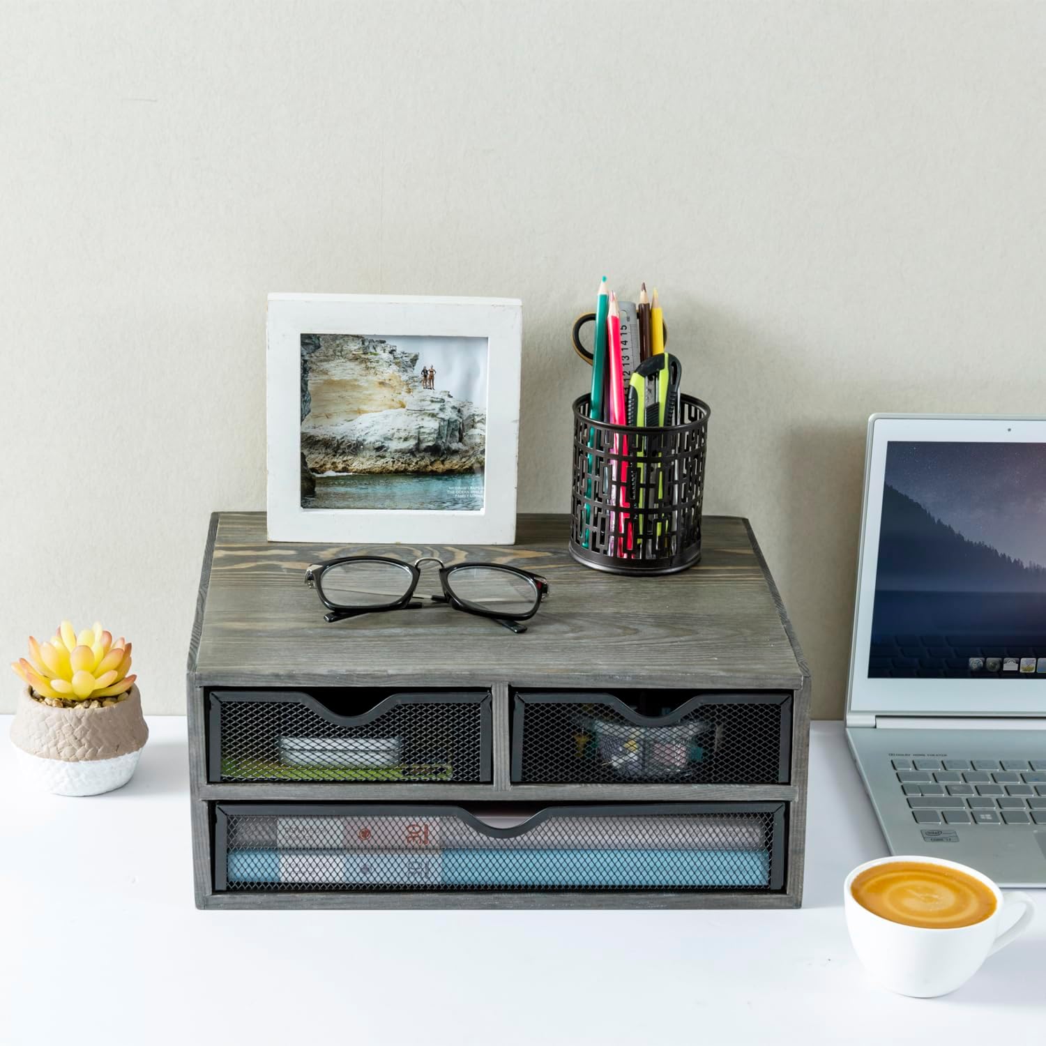 - Multipurpose vintage gray solid wood office supplies storage box with 3 drawers keeps any table, countertop, or desk workspace clutter-free **Accessories are NOT included**