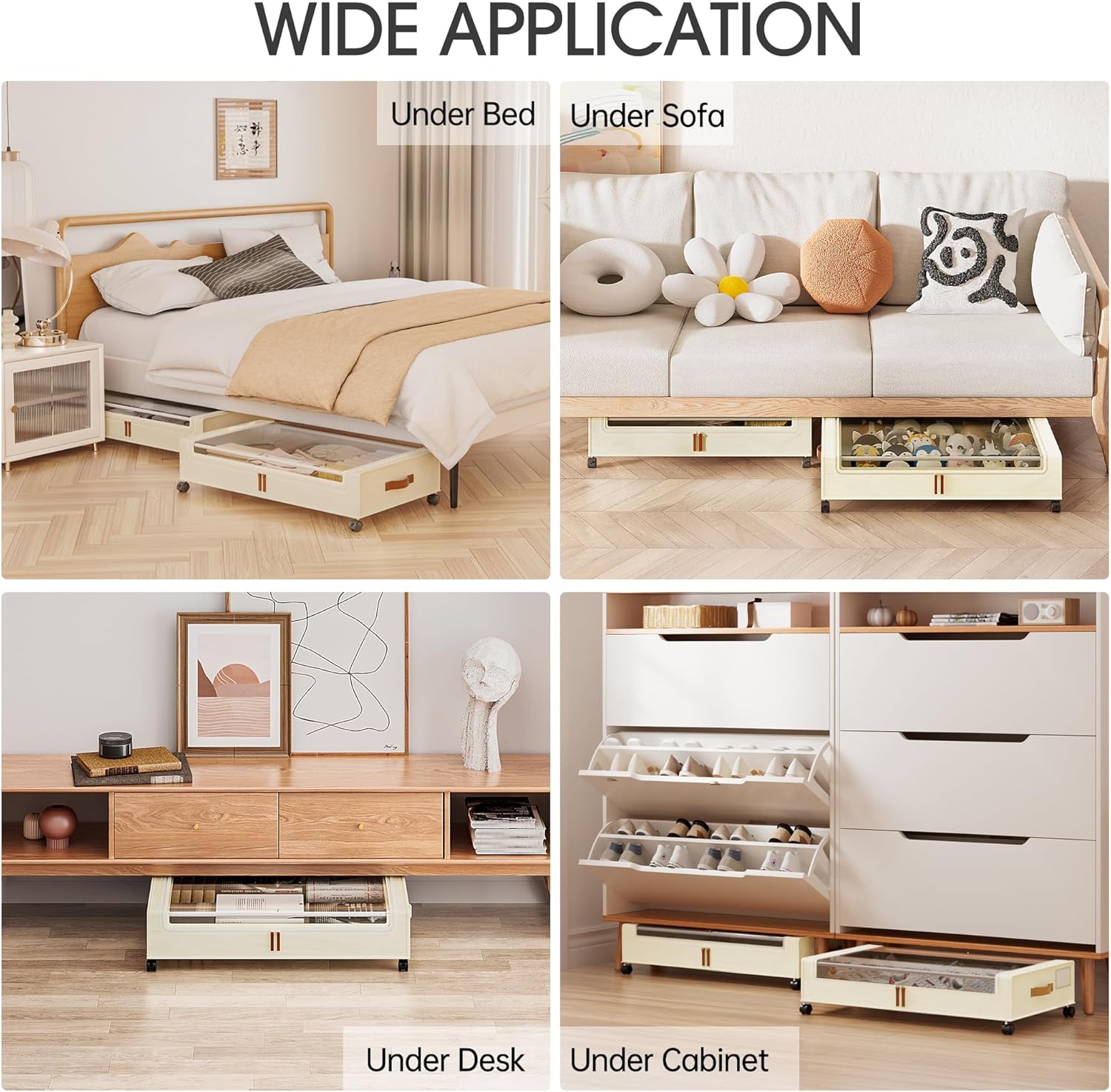 - Versatility: Under bed shoe storage dimensions:30.71 x 16.93 x 6.69 inches (with wheels), (applicable under-bed height > 7in), large capacity exceeds your expectation to store more daily items. It can be placed under beds, sofas, tables, and closets to maximize unused space. In addition, this under bed storage drawers can be folded up when not in use, perfect for small families and college dorms that need extra storage space