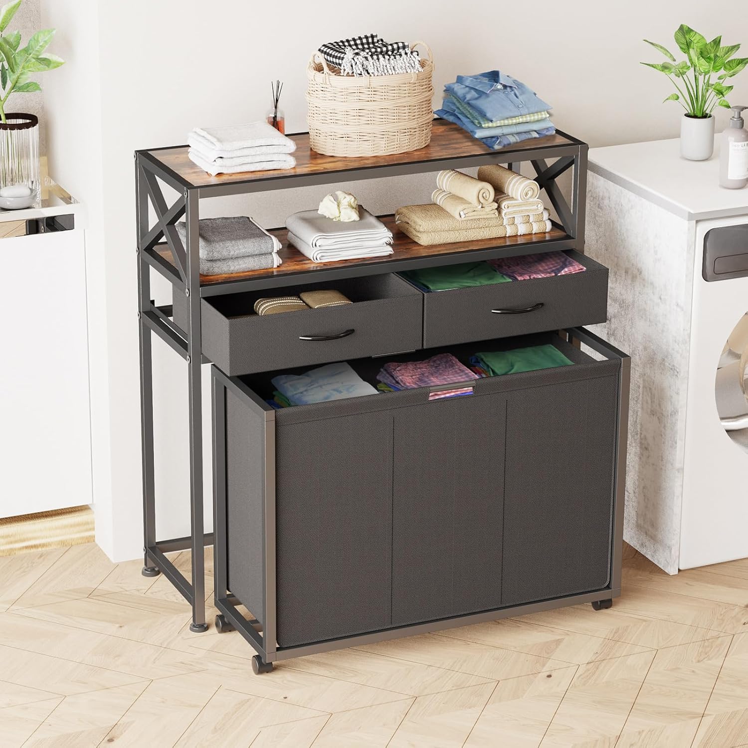 - Durability Meets Capacity: Crafted from high-quality materials, this sturdy laundry basket is built to handle heavy loads. This laundry basket offers strong support (Each shelf: 100 lbs, each bag: 33 lbs).
