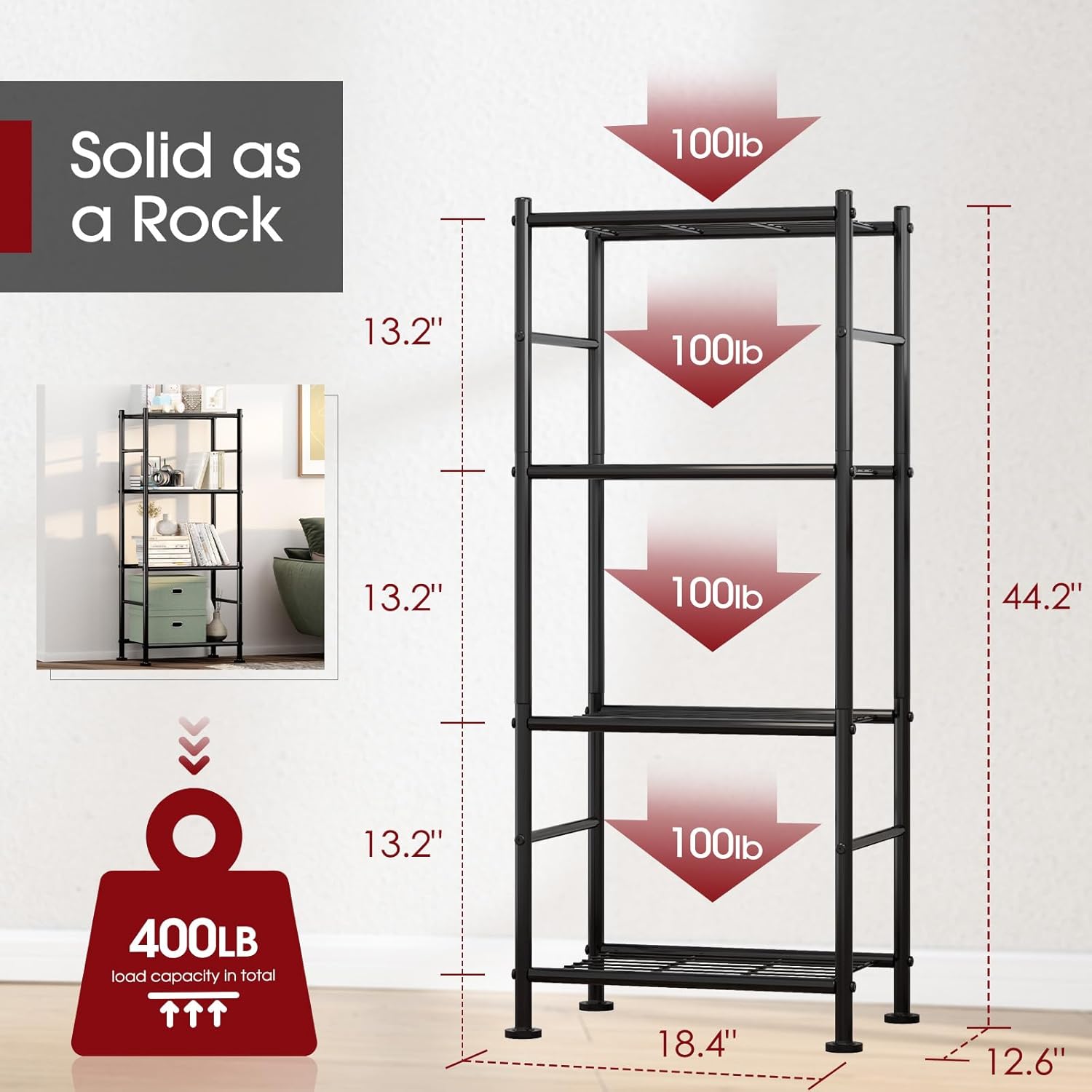 Storage Shelves - 4 Tier Shelf Organizer, Heavy Duty Garage Shelving Unit with Leveling Feet, Stable Metal Shelves Organizer for Pantry, Kitchen and Closet, 18.4" W x 12.6" D x 44.2" H, Black