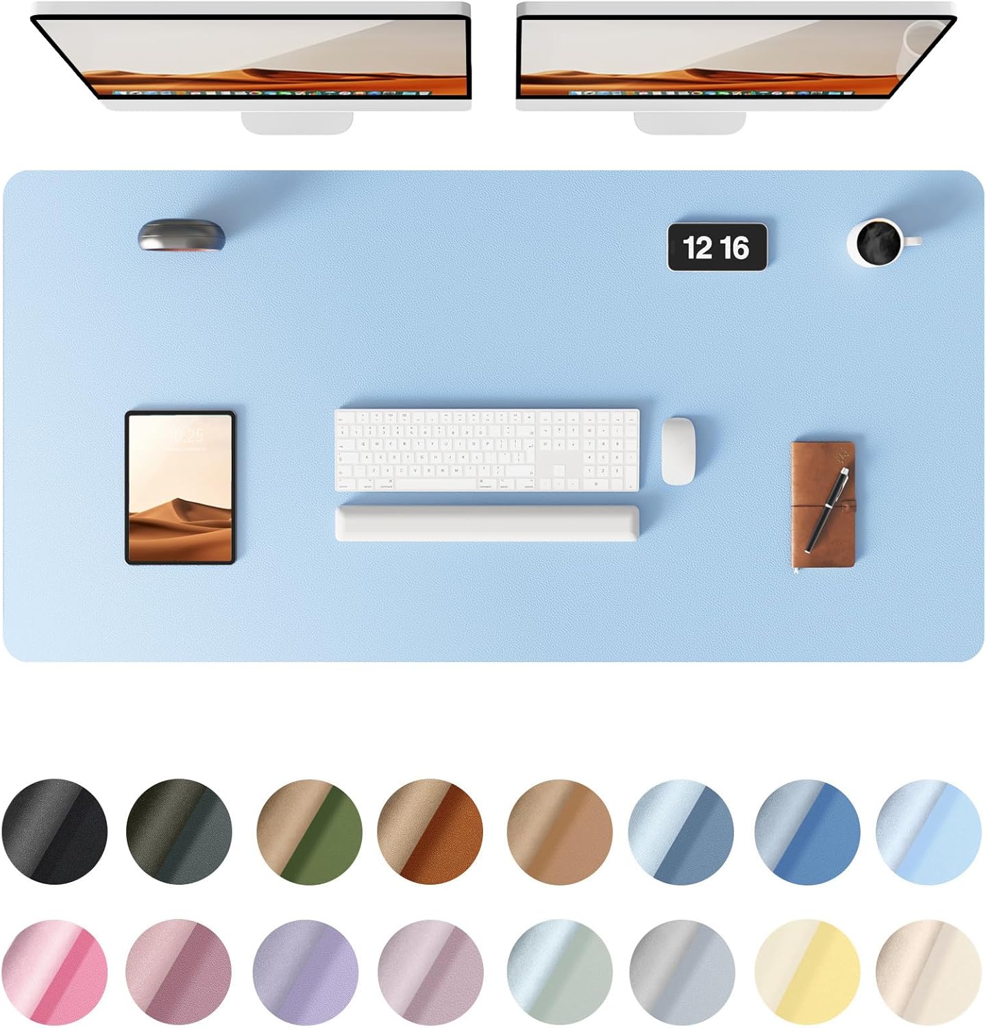 YSAGi Leather Desk Protector, Office Mat, Large Mouse Mat, Non-Slip PU Leather Blotter, Laptop Pad, Waterproof Writing Pad for Office and Home (Baby Blue, 47.2" x 23.6")