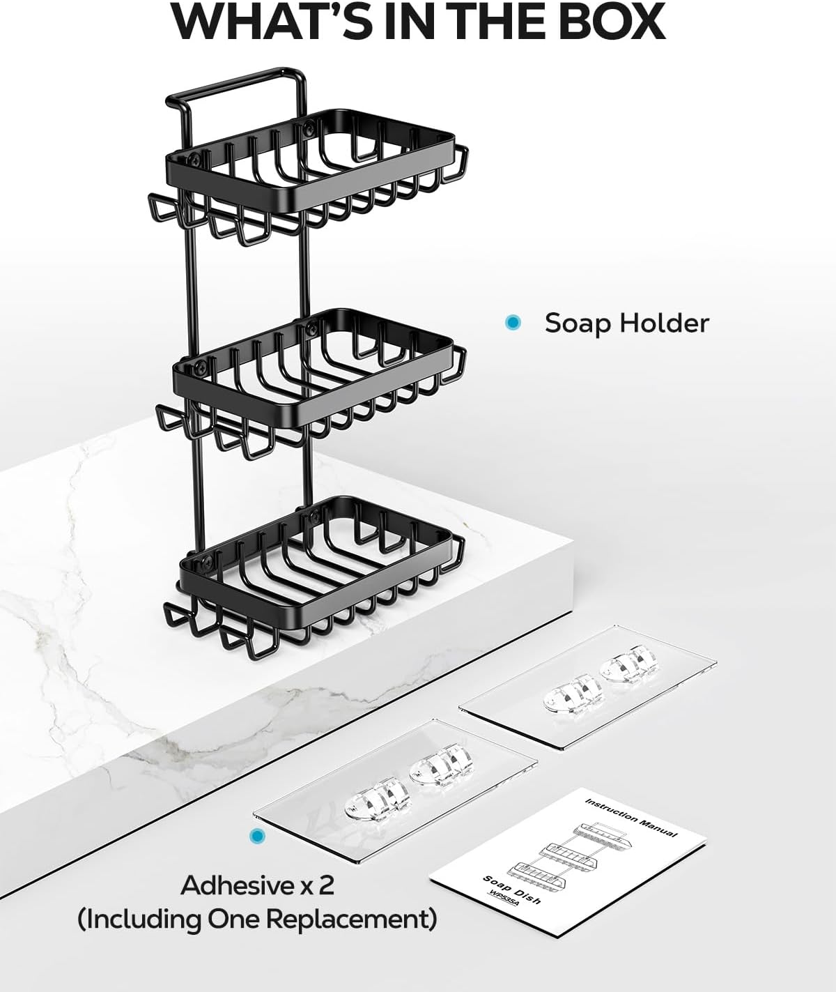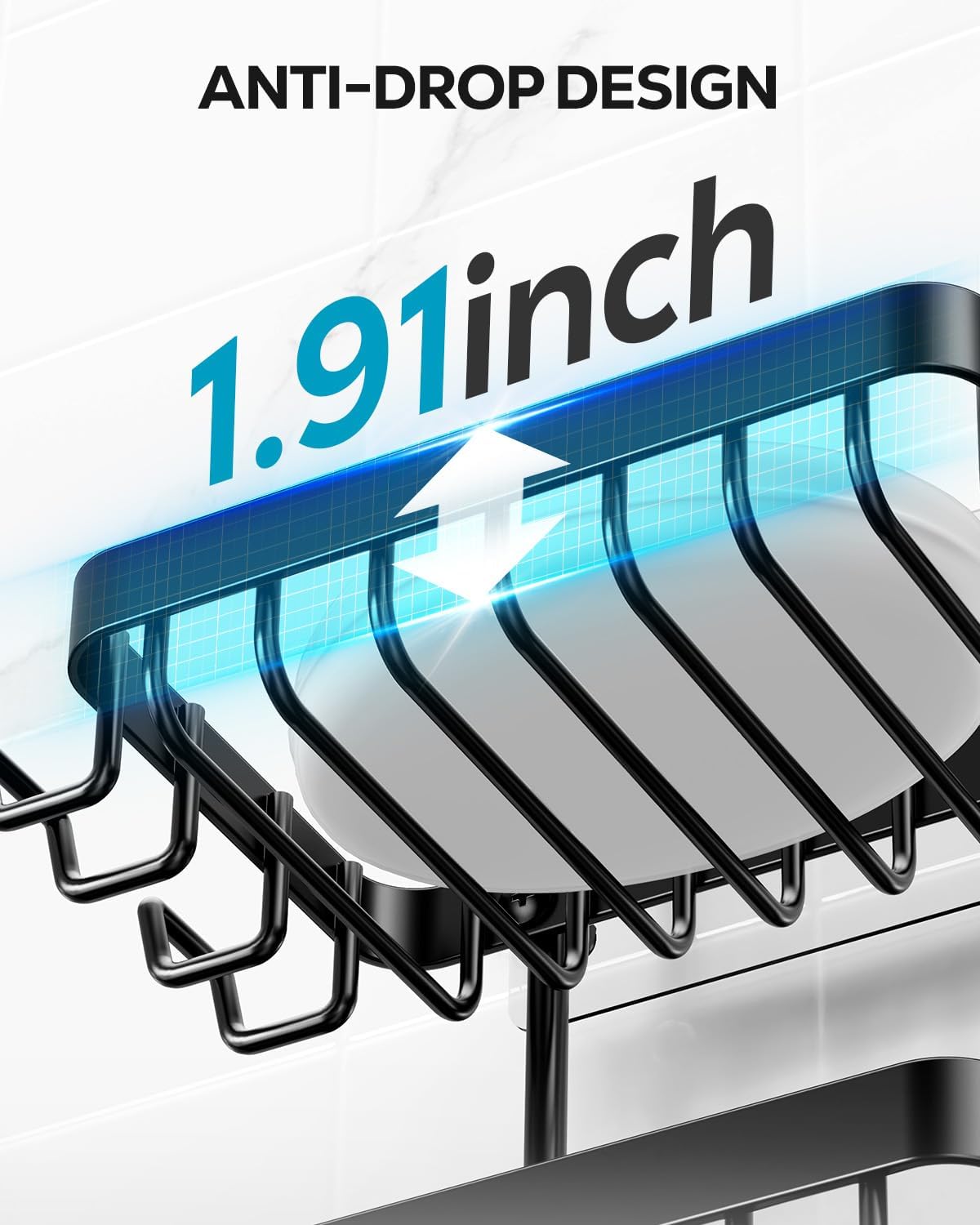 - Sleek Design: With its modern black finish, this 2-tier soap holder adds a touch of elegance and organization to your bathroom or shower area.