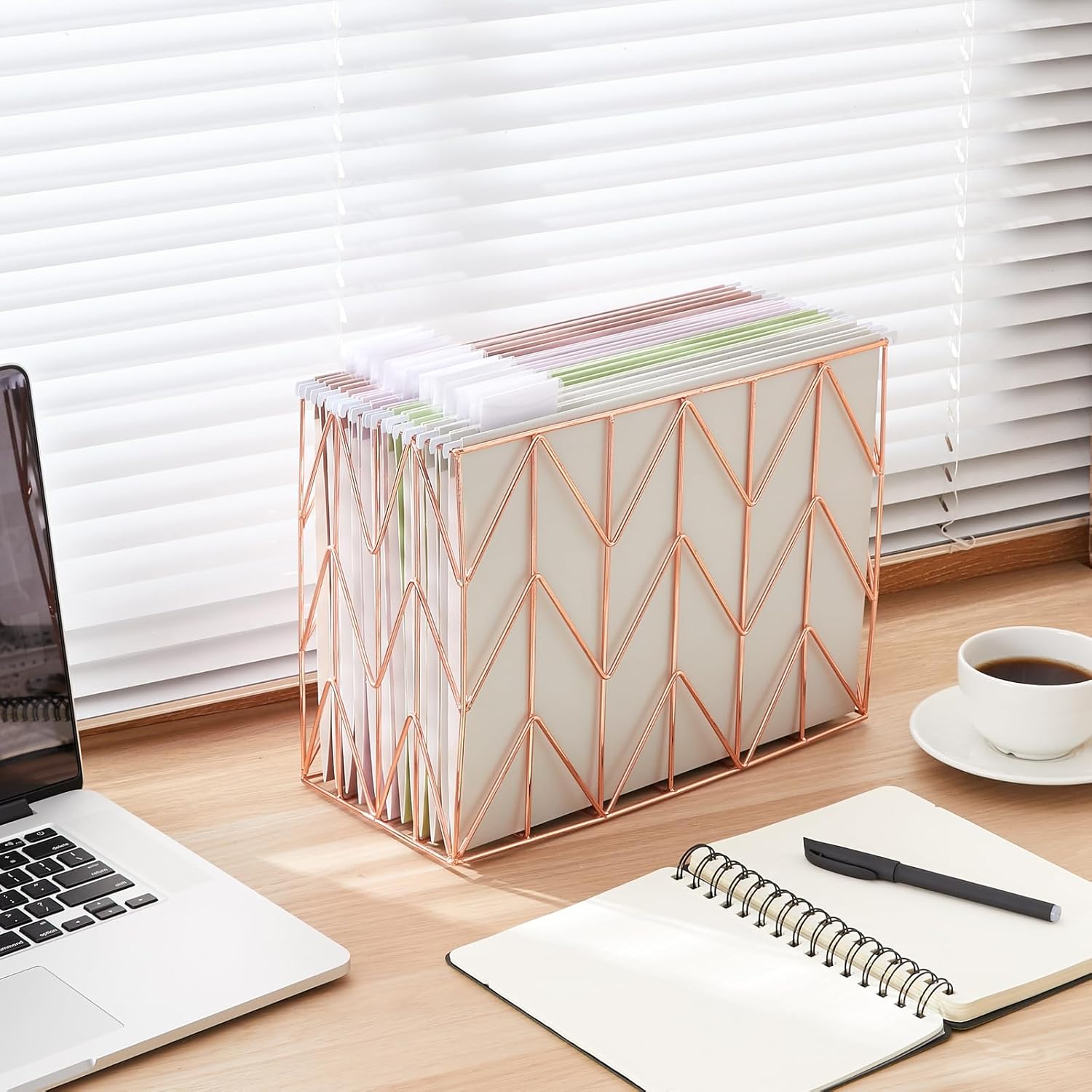 1 Pack Metal Hanging Rose Gold File Organizer, Basket, Box, Storage Box, Office and School Supplies Organizer