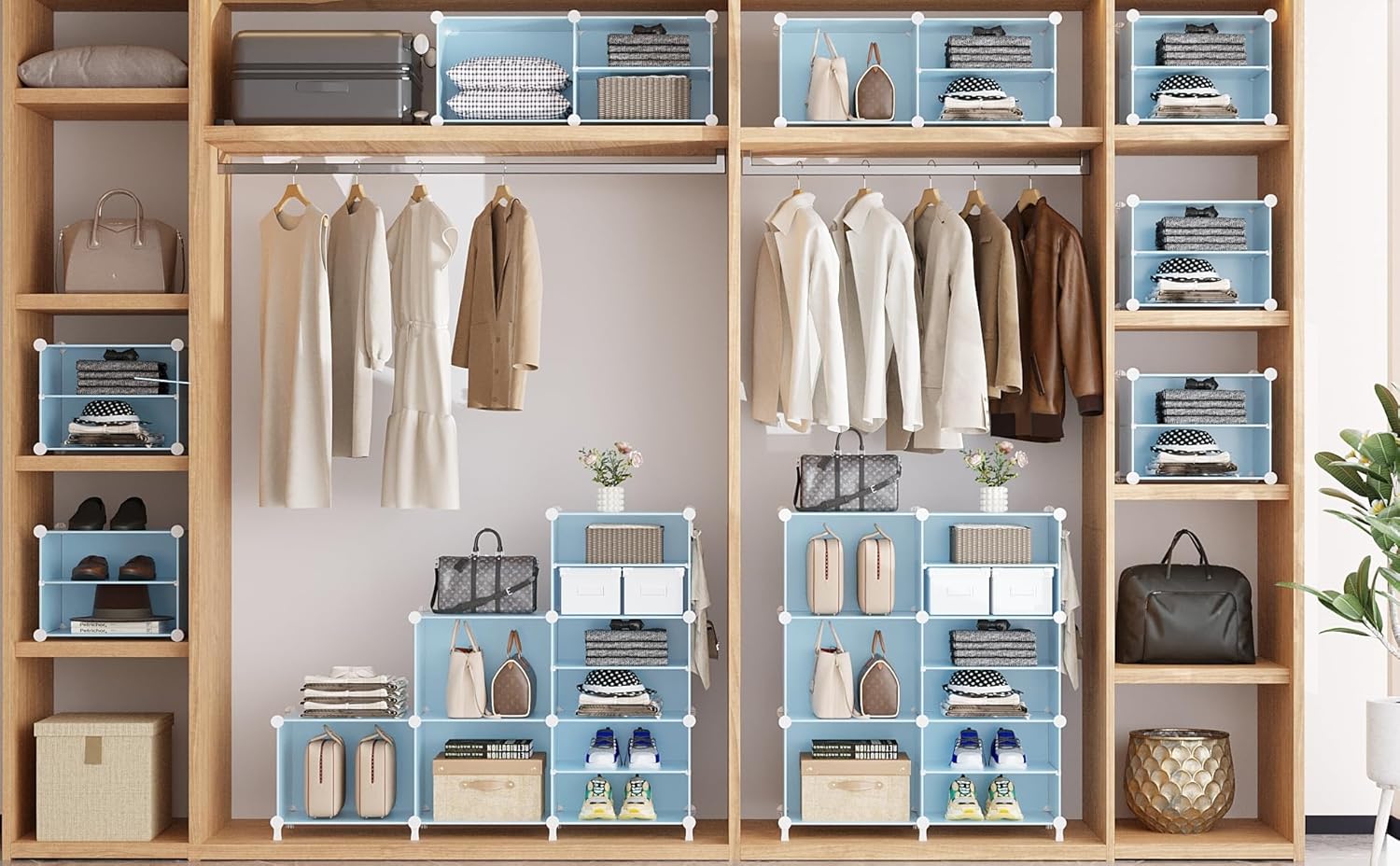 AWTATOS Closet Organizer 6 Cube Storage Shelves Portable Closet Clothes Organizers and Storage Stackable Cubby Shelving for Closet Bedroom Living Room Blue