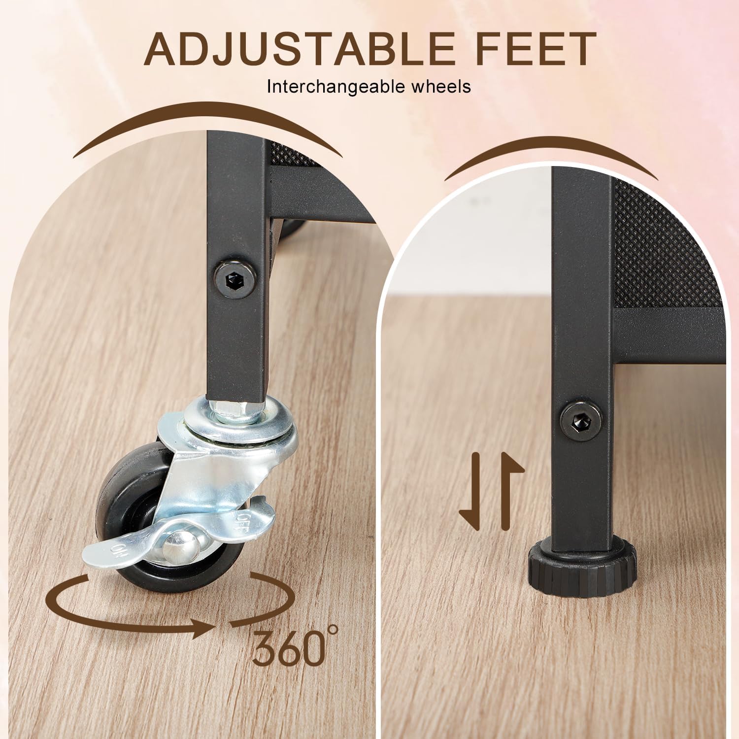 - [Flexible Mobility]: Vertical Narrow Dresser Equipped with four foot pads and four silent swivel wheels. The wheels allow you to move the Storage Tower effortlessly, foot pads can be used to balance and adjust height, offering both convenience and flexibility.