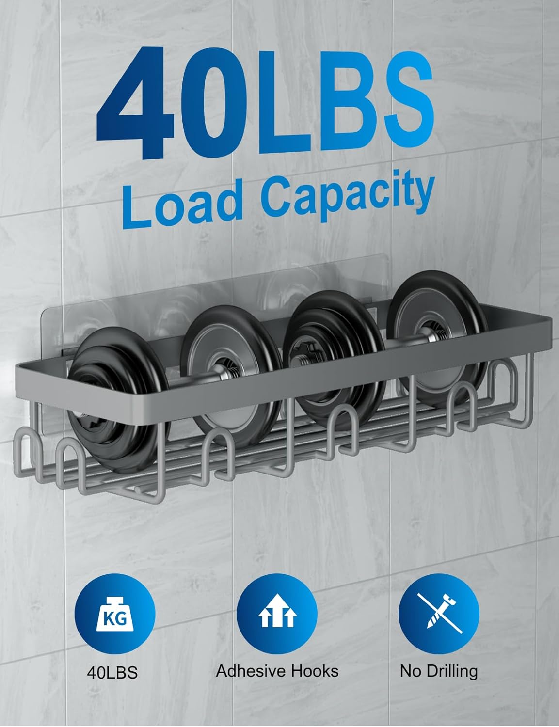 - Enhanced Load Capacity of 40 LBS: Our upgraded transparent adhesive hooks significantly improve the stability of the rack, allowing for an impressive load capacity of up to 40 lbs. These hooks maintain aesthetics and functionality while ensuring a secure hold. The bathroom storage shelves are equipped with rounded corners to prevent scratches and protect your skin during use. Rest assured, our stable wall-mounted shower organizer is designed for safe and reliable use.