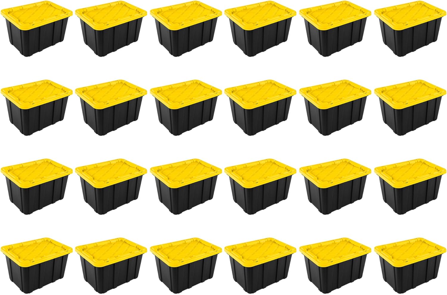 Sterilite 24-Pack Industrial Tote, Plastic Storage Container Bins with Lids, 27 Gallon - Heavy-Duty Organizing Containers for Closet, Bathroom, and Office