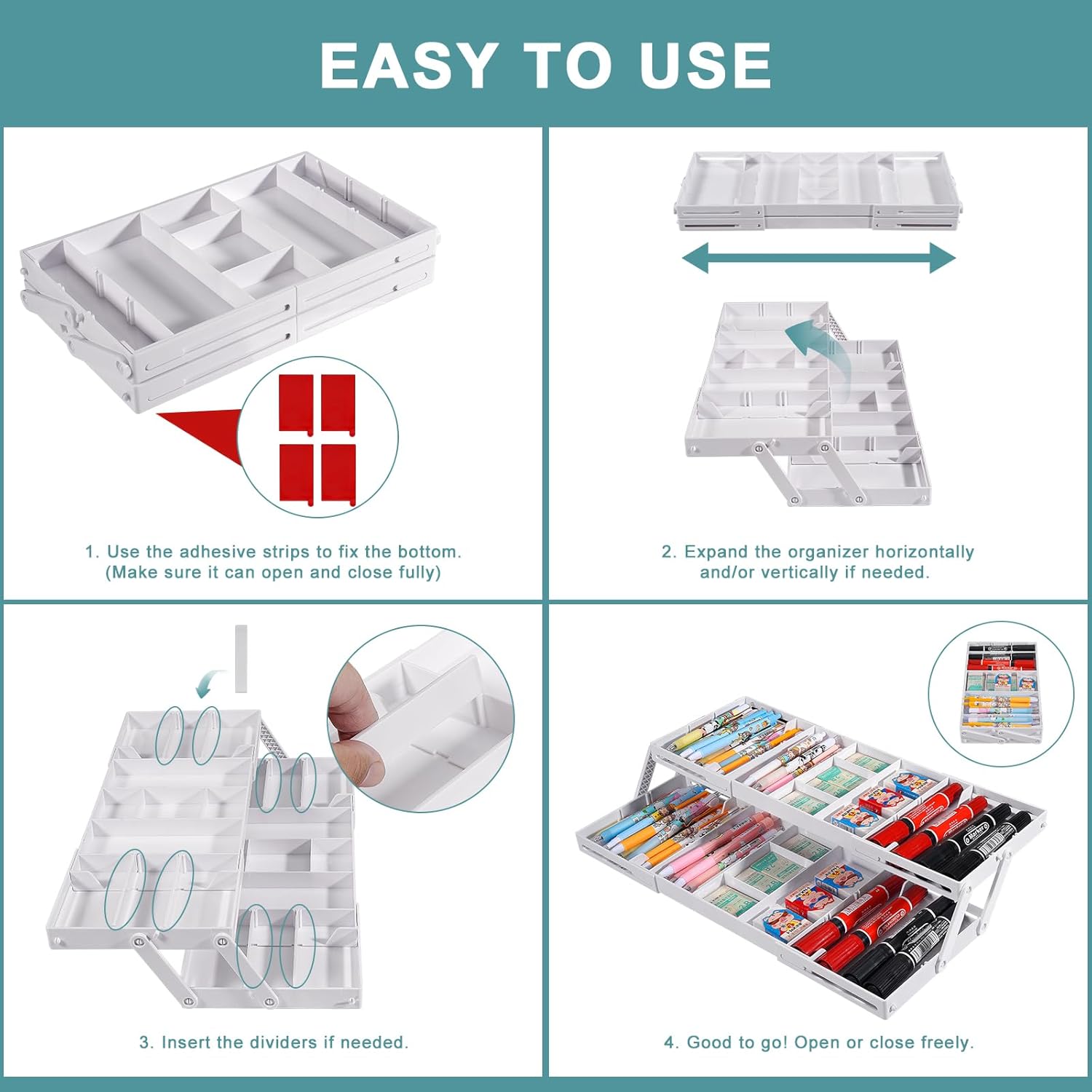 - Versatile & Expandable Neat Storage: Perfect for cosmetics, jewelry, office supplies, crafting and sewing supplies, miscellaneous, odds and ends, toiletries, stationery, tools, batteries, flatware, and kitchen utensils with a collapsible 2-tier or 3-tier design and adjustable dividers.