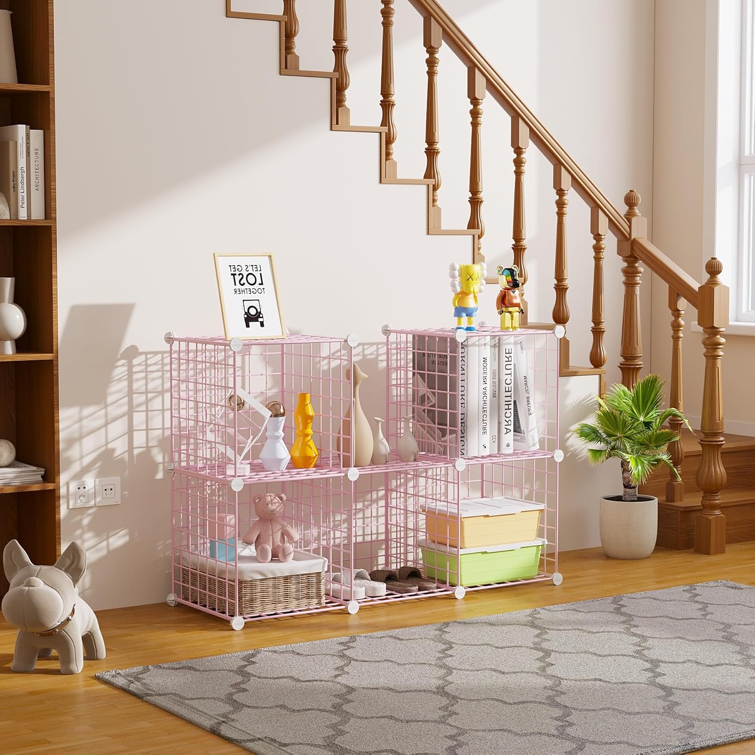 C&AHOME Wire Cube Storage, 6 - Cube Organizer Metal C Grids, Modular Shelves Units, Closet Organizer, Ideal for Home, Office, Living Room, 36.6”L x 12.4”W 36.6”H, Pink UWCS3006P