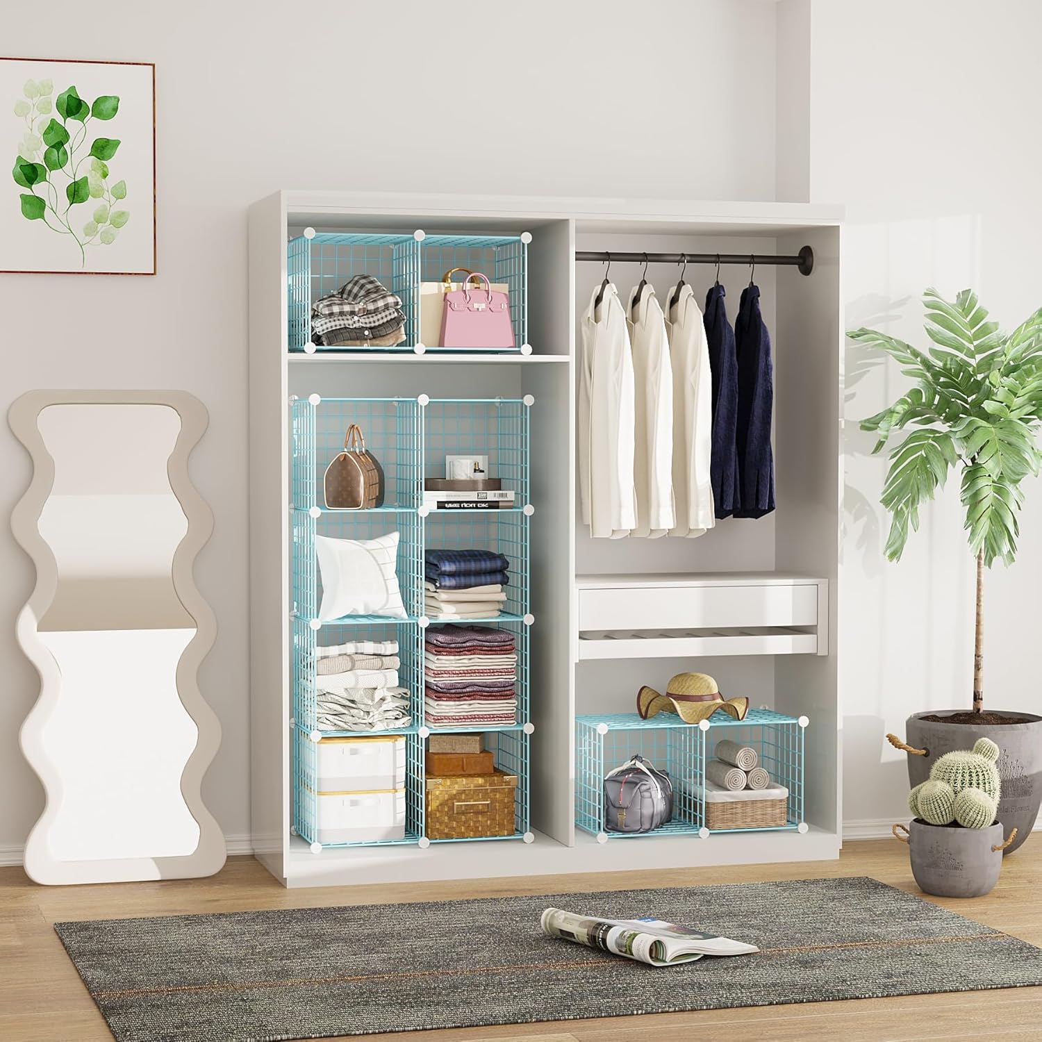 C&AHOME Wire Cube Storage, 12 - Cube Organizer Metal C Grids, Modular Shelves Units, Closet Organizer, Ideal for Home, Office, Living Room, 36.6”L x 12.4”W 48.4”H, Blue UWCS3012B