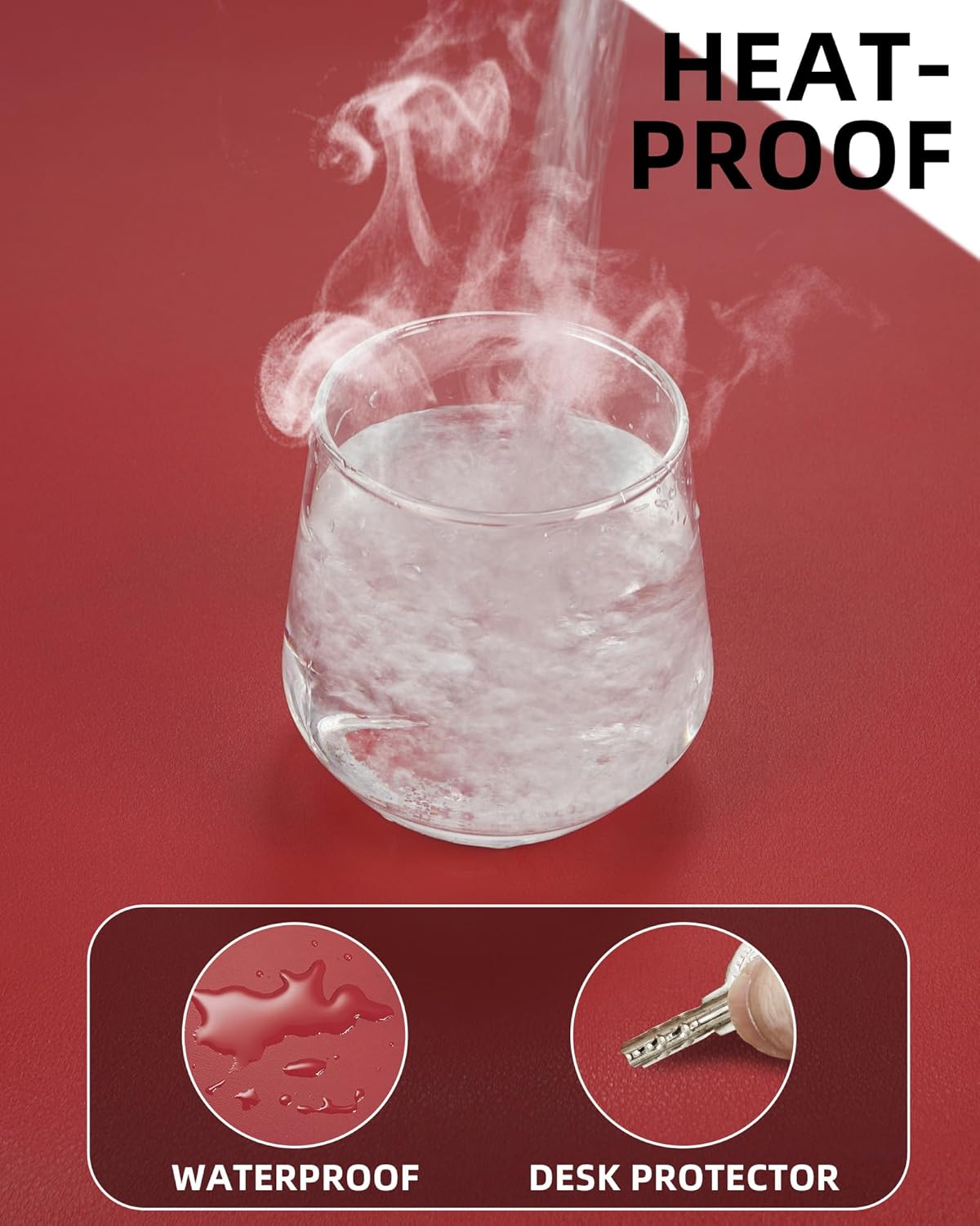 Leather Desk Protector, Red Office Mat, Non-Slip PU Laptop Blotter, Waterproof Writing Pad for Office and Home (Red, 31.5" x 15.7")