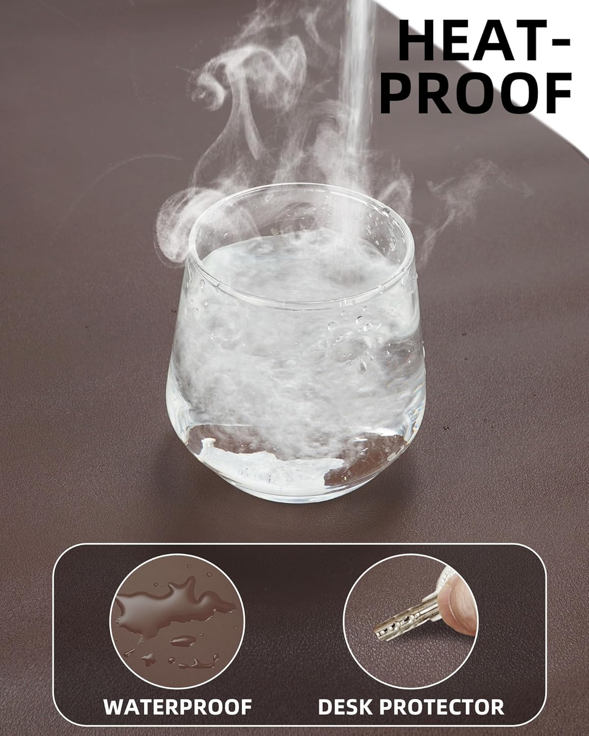 PU Leather Mouse Pad & Desk Mat - 31.5"x15.7" Large Non-Slip Office Desk Pad, Waterproof Laptop & Writing Surface, Premium Workstation Cover for Home & Office (Coffee Brown)