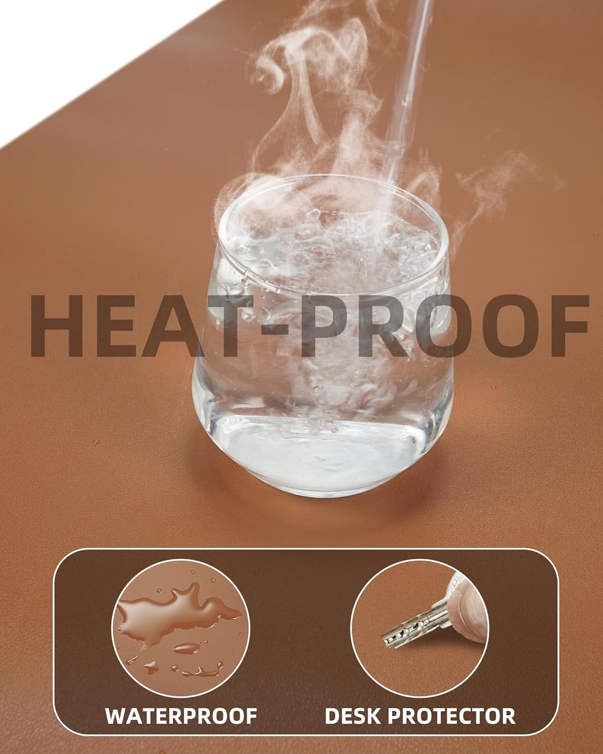 Leather Desk Mat, Mouse Pad,Office Desk Pad, Non-Slip PU Leather Desk Blotter mat,Laptop Desk Pad,Waterproof Desk Writing Pad for Office and Home (Brown,31.5" x 15.7")