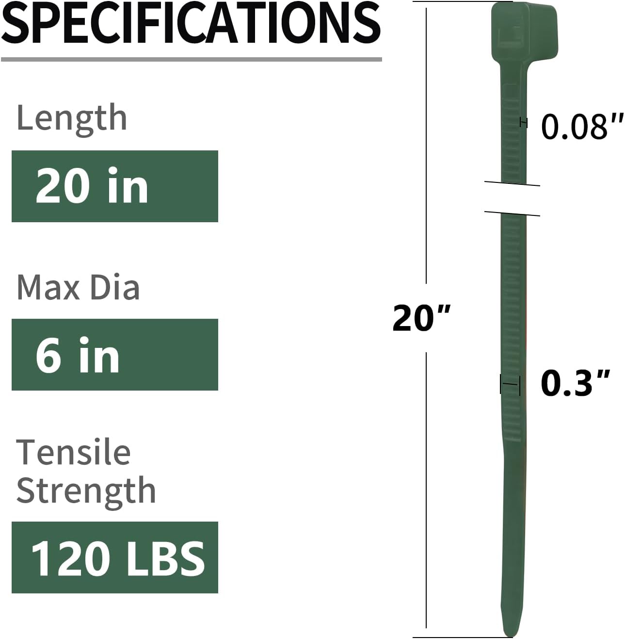 - 【Package Detail】The package includes black heavy duty zip ties 20inch/500mm .Cable ties width: 0.3inch/7.6mm Total Quantity: 100 pcs
