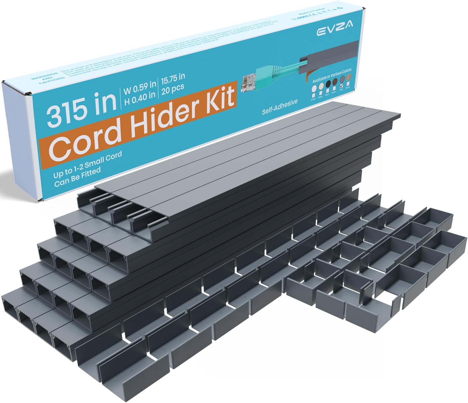 - Quick Tool-Free Installation : You’ll have two flexible installation ways, just choose what best suits your need. All Evza power cord cover channels have pre-applied self-adhesive backing, for easy peel & stick installation - channels can be drilled and screw-fixed if preferred. Perfect cord covers for wall mounted TVs, computers on desks & other installations, this TV kit wire hider includes connectors (Couplings / Flat / T / Inside / Outside Elbows).