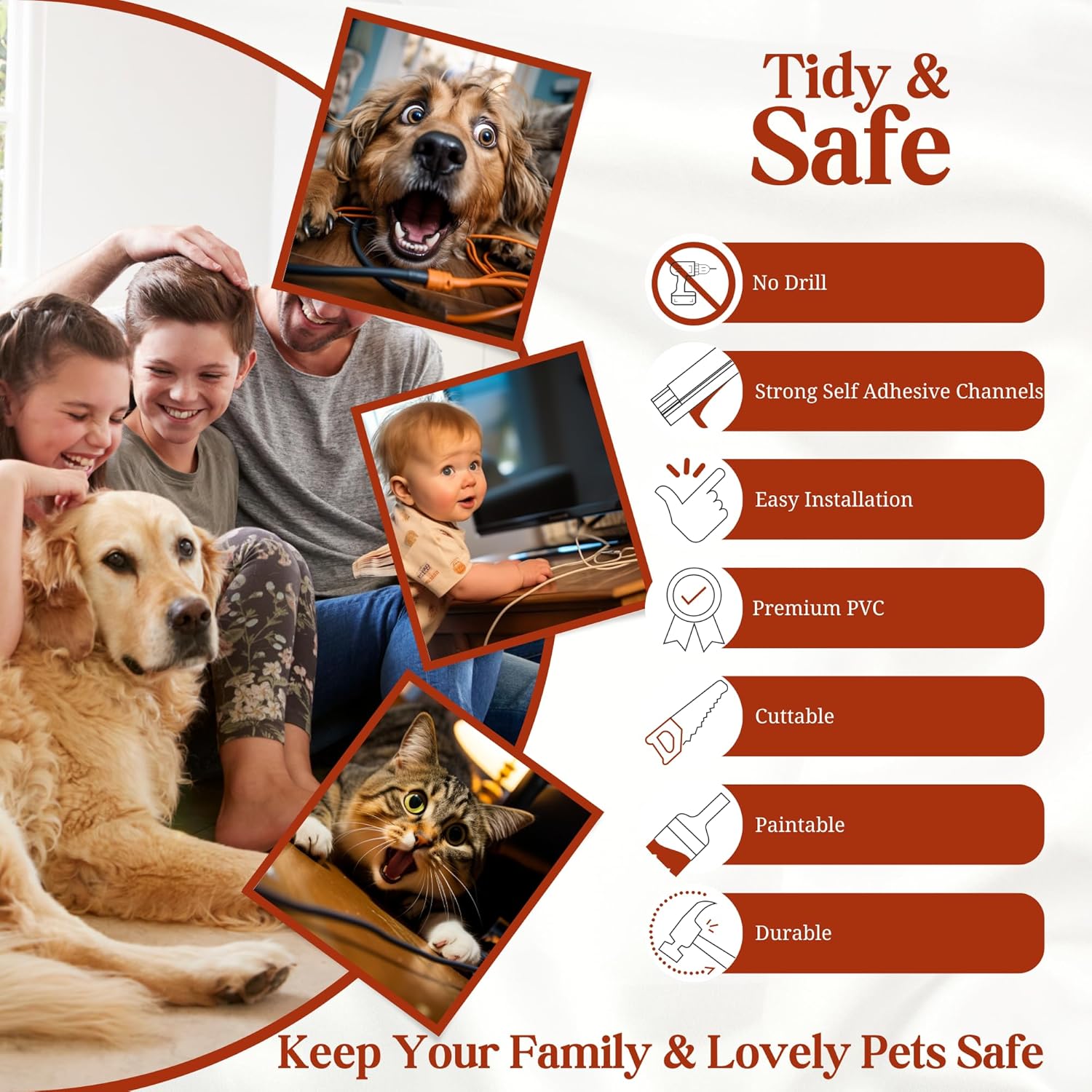 - Say Goodbye to Tangled Wires : Make your living space tidy and safe with the EVZA cord hider an elegant solution for concealing and arranging unsightly cords in both home and office environments. Experience the satisfaction of a clutter-free home or workspace with our easy-to-install cord management system. Enjoy newfound space and freedom of movement, as the EVZA wall cable cover becomes your go-to cable raceway for a tidier environment.