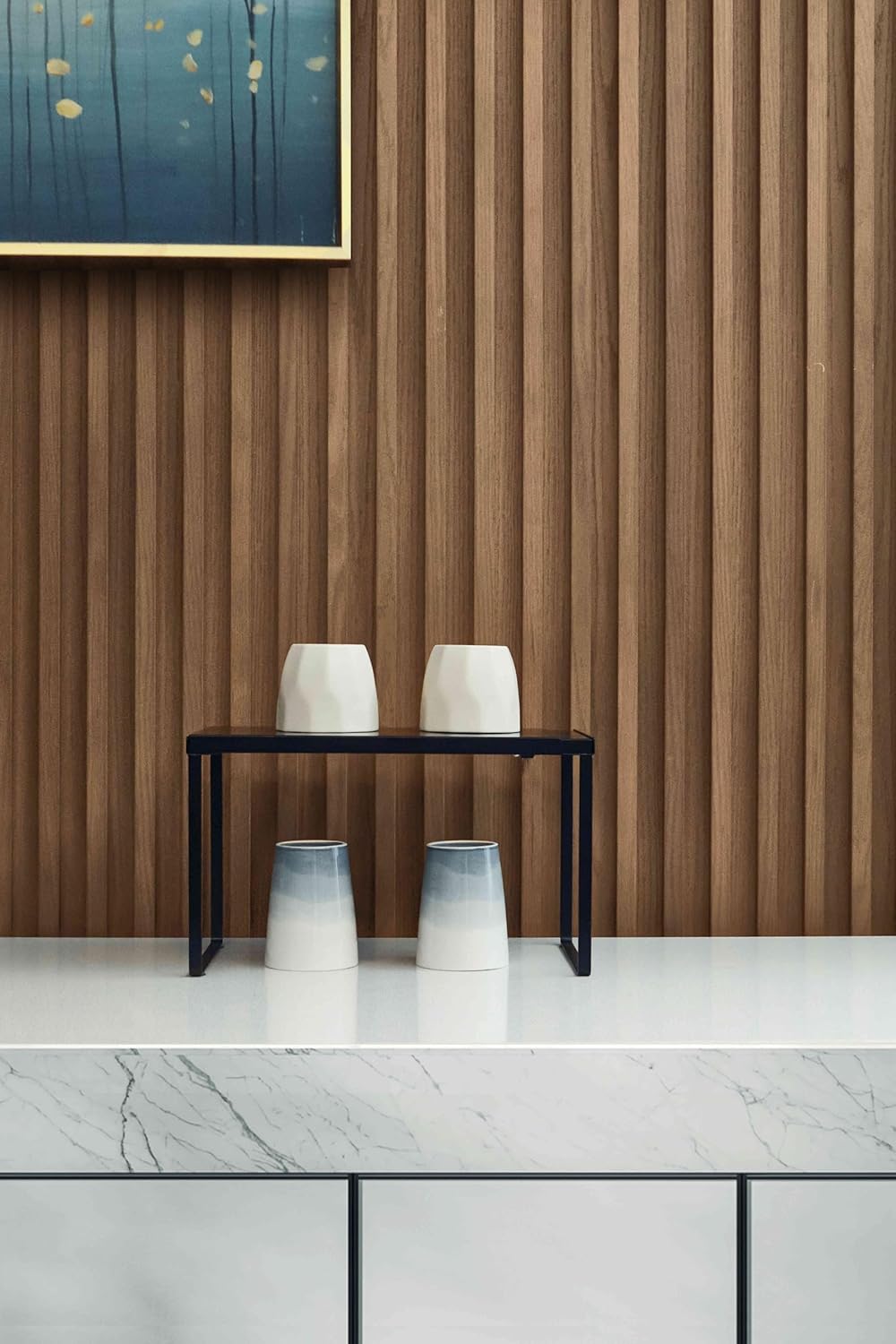 - SPECIFICATION: 11.8’’D * 14.56-24.6’’W * 8.46’’H. If you purchase 2 of these expandable shelves set you can stack one of top of another thereby creating a two-tier storage space. Easy to assemble with a clear manual.