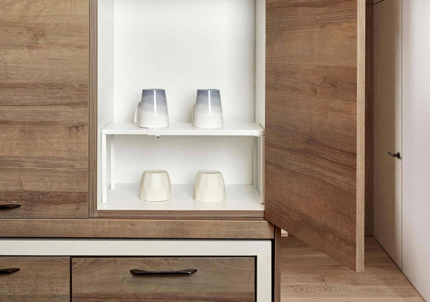 Nxconsu Cabinet Shelf Expandable Organizer Riser Rack for Kitchen Pantry Cupboard Under Sink Countertop Home Organization Extra Storage Space Saver Heavy Duty Metal Edgeless Design White Extra Large