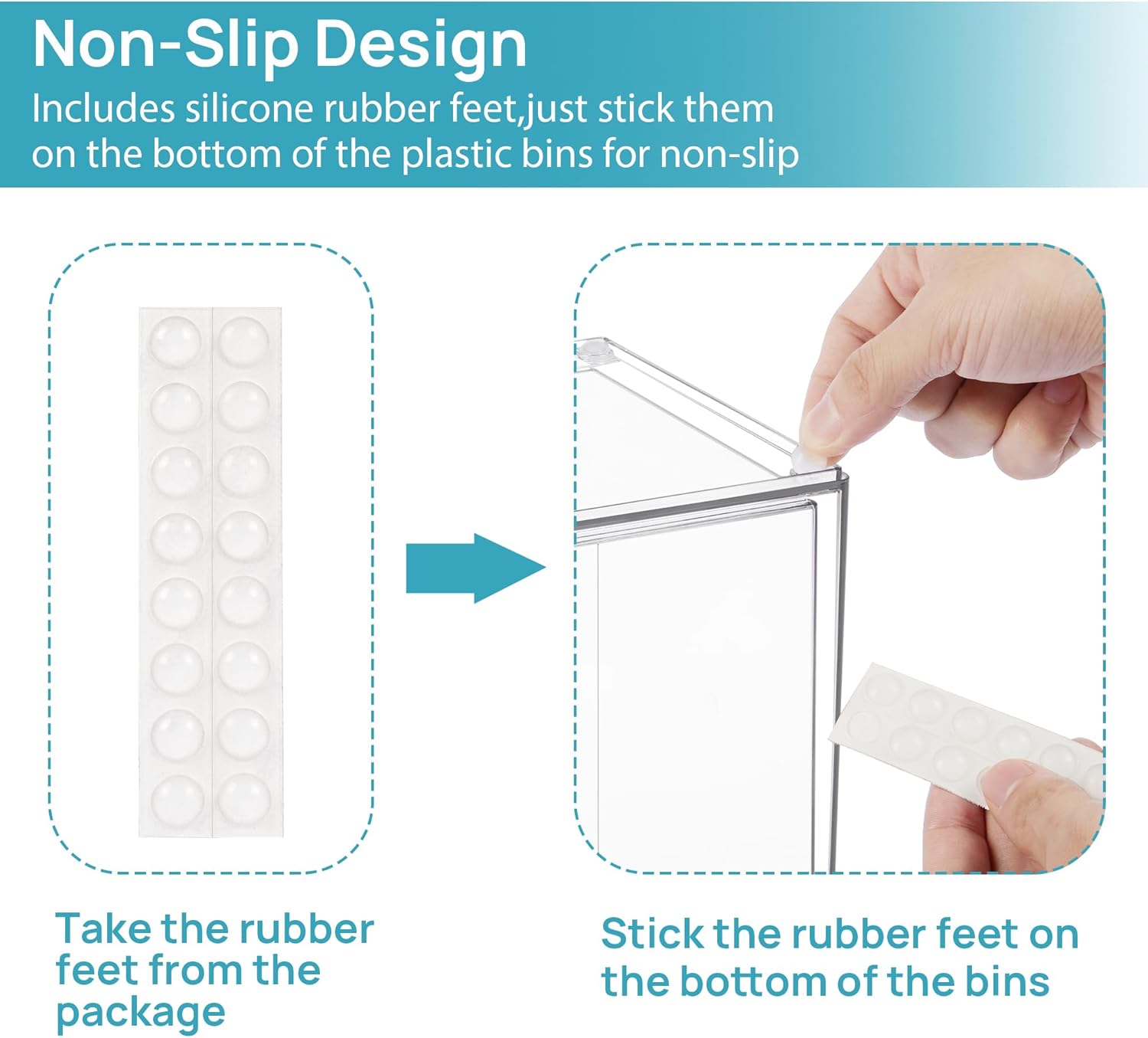 - [Built-in Handle and Non-Slip] The storage containers are designed with pull-out handles, it is convenient for you to store and take out items.Extra silicone pads are included, just stick them on the bottom of the outer box for non-slip,the outer box will not move when the drawer is pulled out,providing you with easy organization and storage.