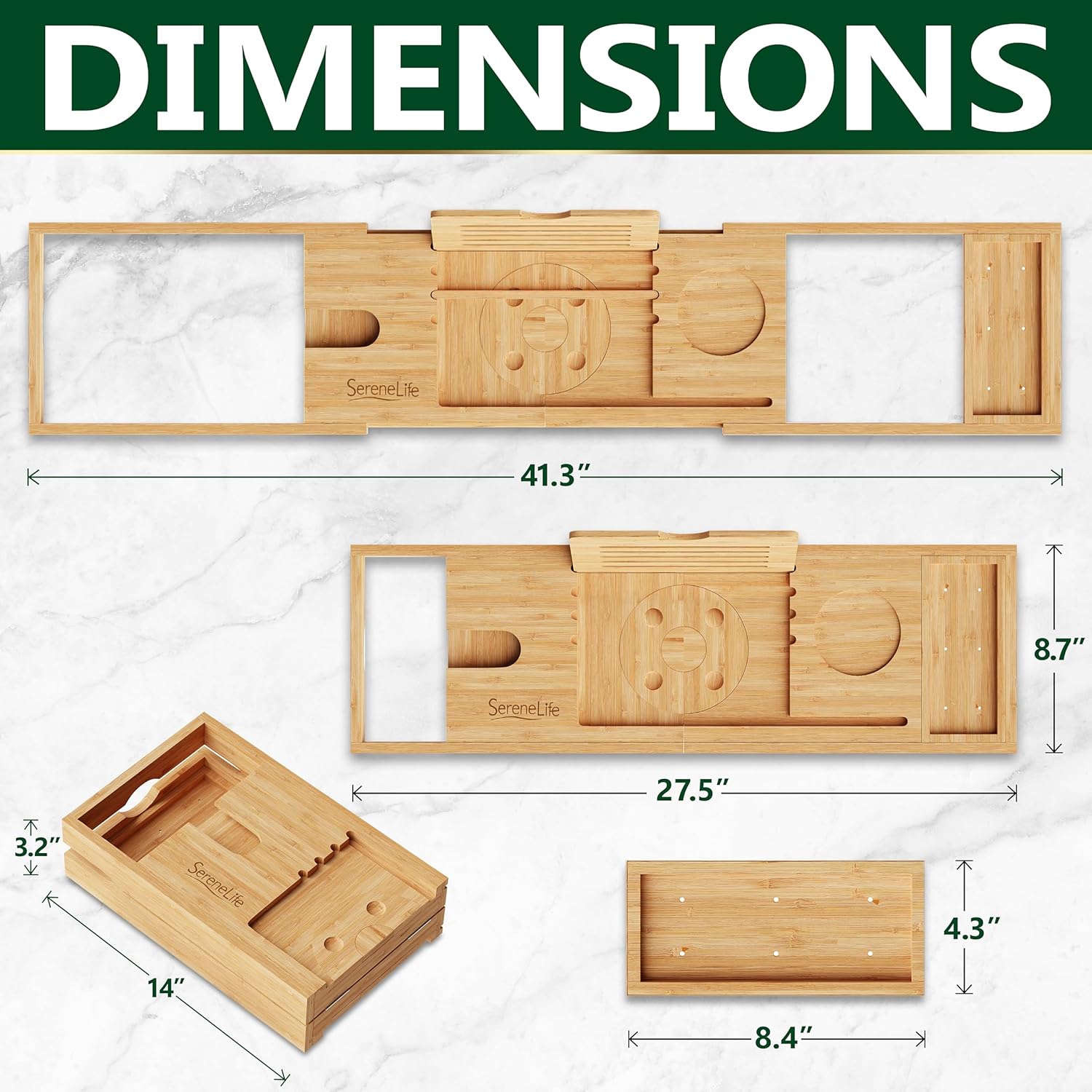 - ADJUSTABLE LENGTH: The bath tray table rack for tub fits most tubs in the market and standardly sized bathtubs because of its adjustable length. The sides expand and collapse as wanted, can extend up to 43 inches