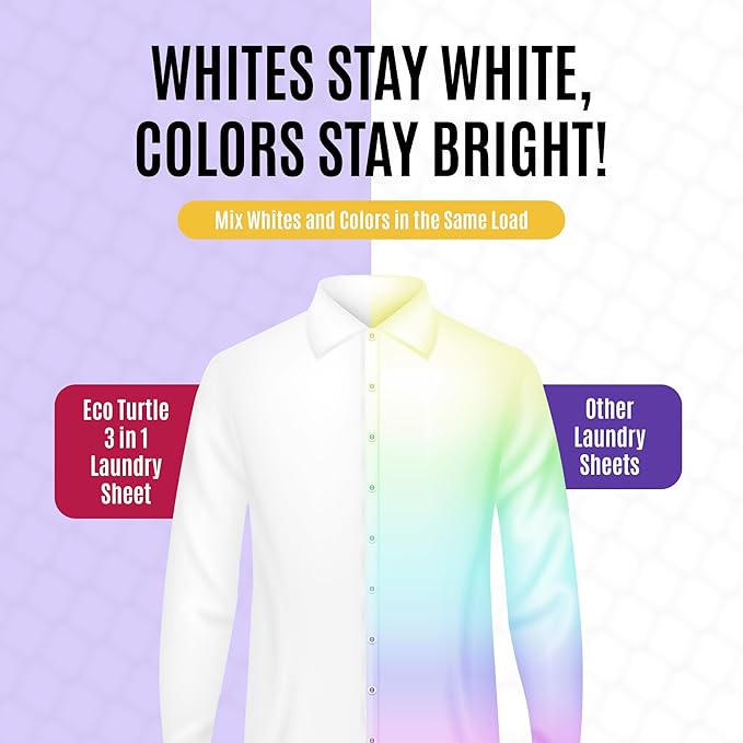 - ALL IN ONE SOLUTION - Eco Turtle 3 in 1 Multifunctional Laundry Detergent Sheets combines detergent, fabric softener, and color catcher into a single sheet, streamlining your laundry process and eliminating the need for multiple products.