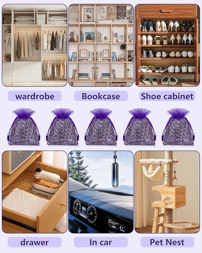 - 【𝙀𝙛𝙛𝙚𝙘𝙩𝙞𝙫𝙚 𝘾𝙡𝙤𝙩𝙝𝙞𝙣𝙜 𝙋𝙧𝙤𝙩𝙚𝙘𝙩𝙞𝙤𝙣】: The lavender sachets for drawers and closets not only emit a pleasant aroma but also effectively protect clothing from moths and mold. Confidently recommended, these sachets are sure to become a favorite for wardrobe management.