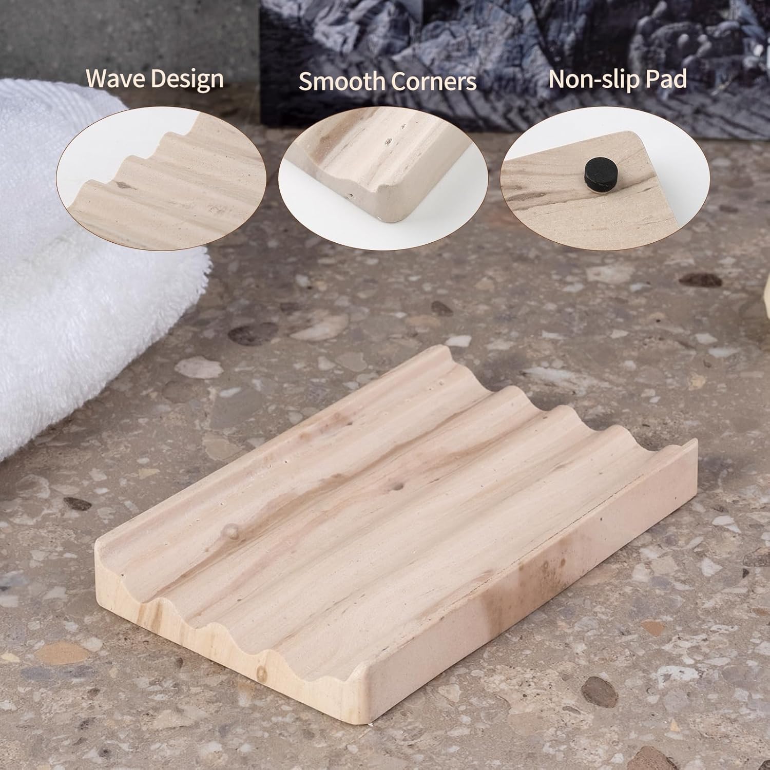 - EXCELLENT DESIGN: Square bar soap dish for holding soap, designed in a wave shape with raised edges. This soap dish drains the soap effectively, preventing it from slipping out and keeps soap clean and dry. The heavy marble soap holder comes with 4 non-slip pads, the pads are under the box for better water leakage.