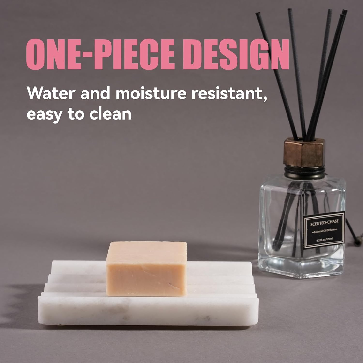 - STURDY AND MODERN: The stone soap dish oval concave design measures 4.7 inches by 2.7 inches and is suitable for most bar soaps on the market. High-quality marble material ensures the shower soap holder is long-lasting and durable, won't lose the luster of the mabrle soap dish surface over time.