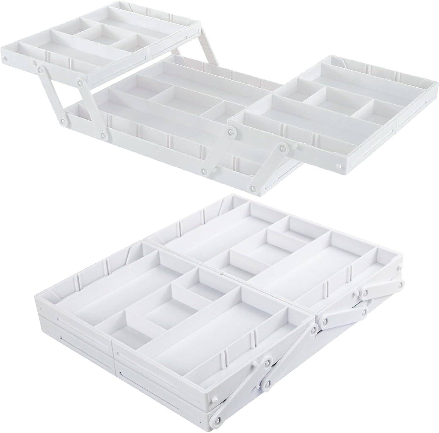 2/3 Tier Smart Collapsible Drawer Organizer,Multi Level Stacking Folding Junk Organizer, Foldable Expandable Pop up Tray, Expanding Multilevel Triple Desk Space Organizer (2 Row 2 Tier - White)