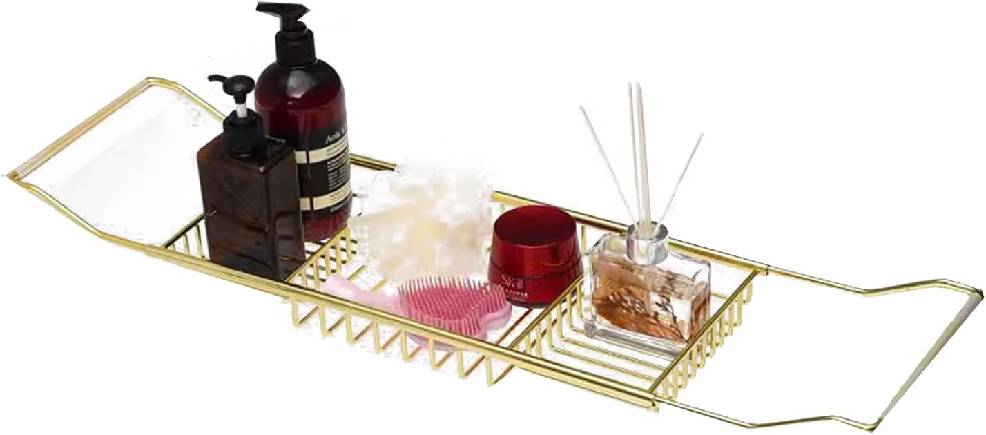 Stainless Steel Expandable Shower Bathtub Tray Over Tub Bath Caddy Expandable Bath Caddy for The Elegant Tub Chrome Polished (Gold)