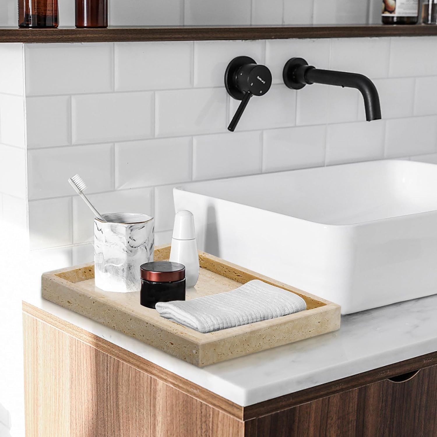 Travertine Tray,Bathroom Vanity Tray Non-Ceramic/Non-Resin,Marble Perfume Decorative Tray 12 x 8 inch (Travertine)