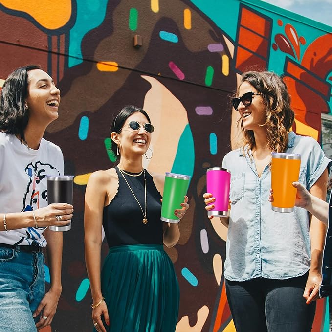 - POWDER COATED & EASY TO HOLD - The outside of the insulated travel tumblers is non-toxic frosted powder coating. There are 12 colors of powder coating, there is always a style you like. The frosted texture of the tumblers’ outer wall makes it easy for you to hold and the outer wall of the tumbler will never hang water droplets. In addition, Our insulated tumblers are also suitable for laser engraving, vinyl decals or color painting