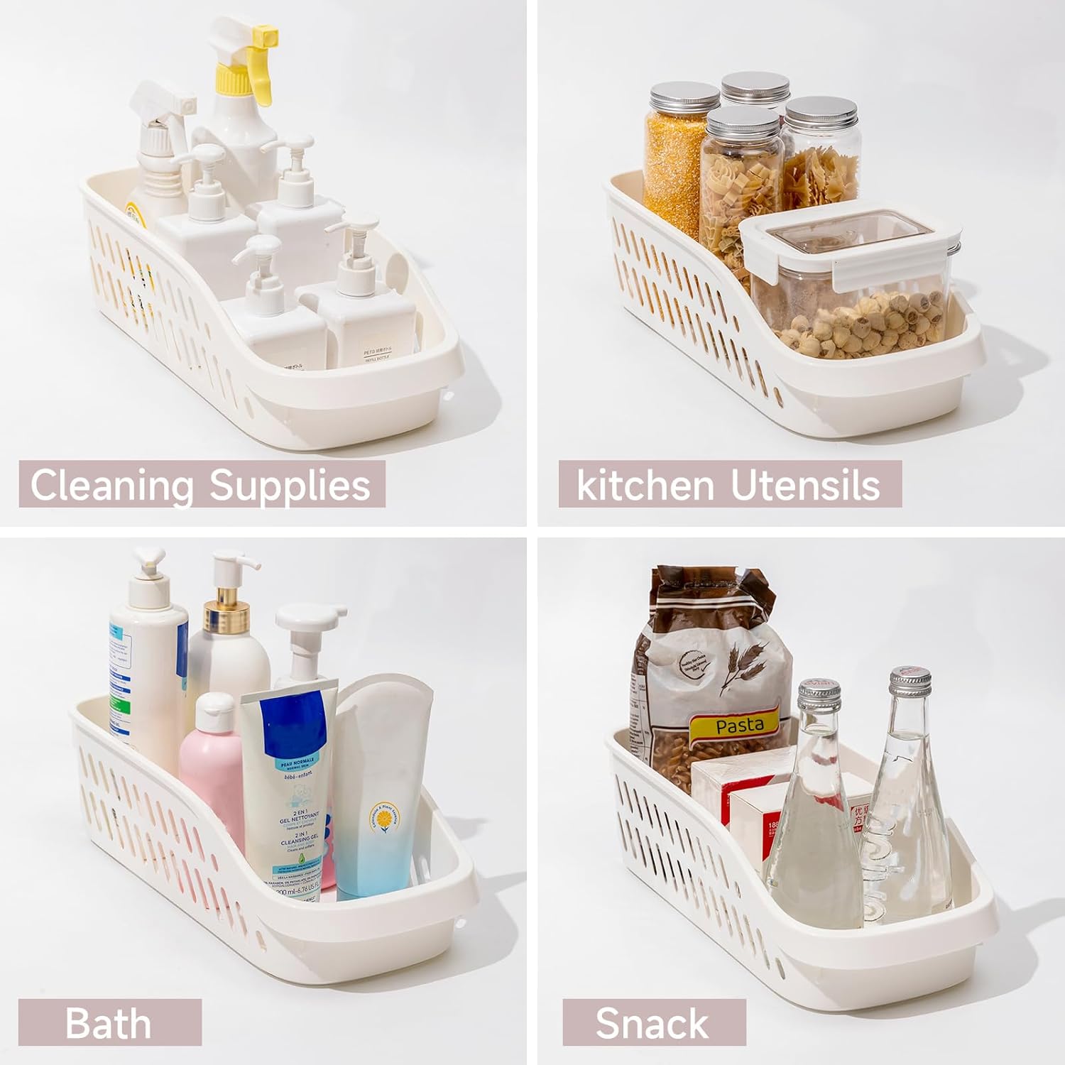 - QUALITY MATERIAL: The under cabinet organizer is made of high quality shatterproof plastic with no odor. The plastic baskets for storage are flexible and easy to clean, and the soft cream color highlights the texture.