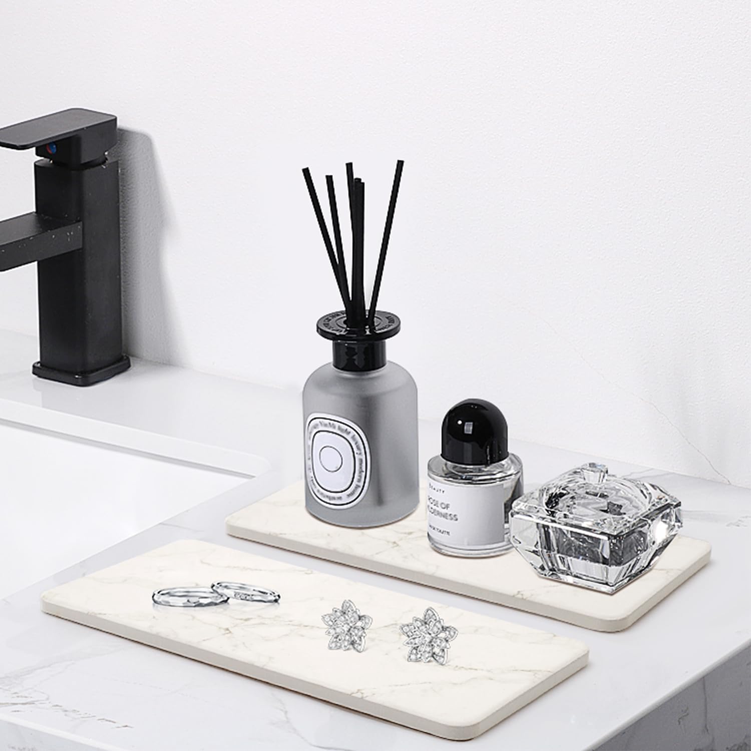2 Pcs Water Absorbing Stone Drying Trays for Bathroom Sink Kitchen Counter Soap Dish Dispenser Sponge Holder White Ceramic Bathroom Vanity Quick Dry Stone Mat for Kitchen Sink Marble Diatomite Tray