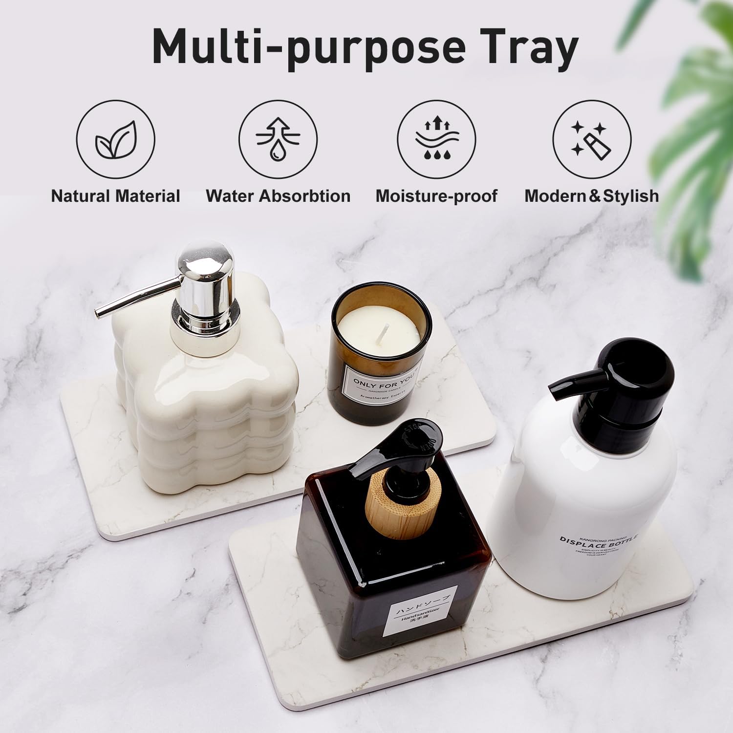 - QUICK DRYING SINK TRAY: Our instant drying stone is made of absorbent ceramic, the water-absorbing properties of the stone ensure that any excess water that may drip from your soap/hands is absorbed efficiently, helping keep your countertop clean and dry.